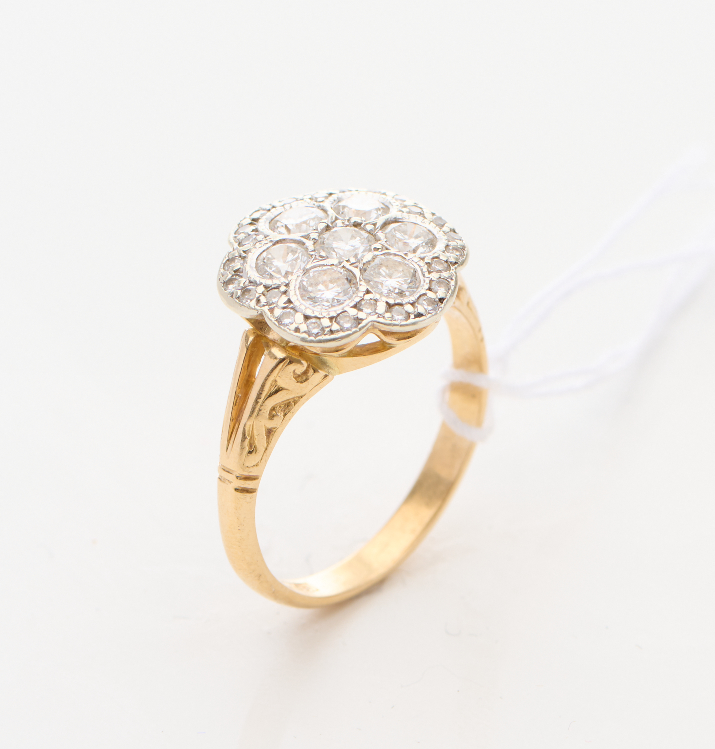 A DIAMOND FLORAL RING IN 18CT GOLD, SIZE L-M, 4GMS