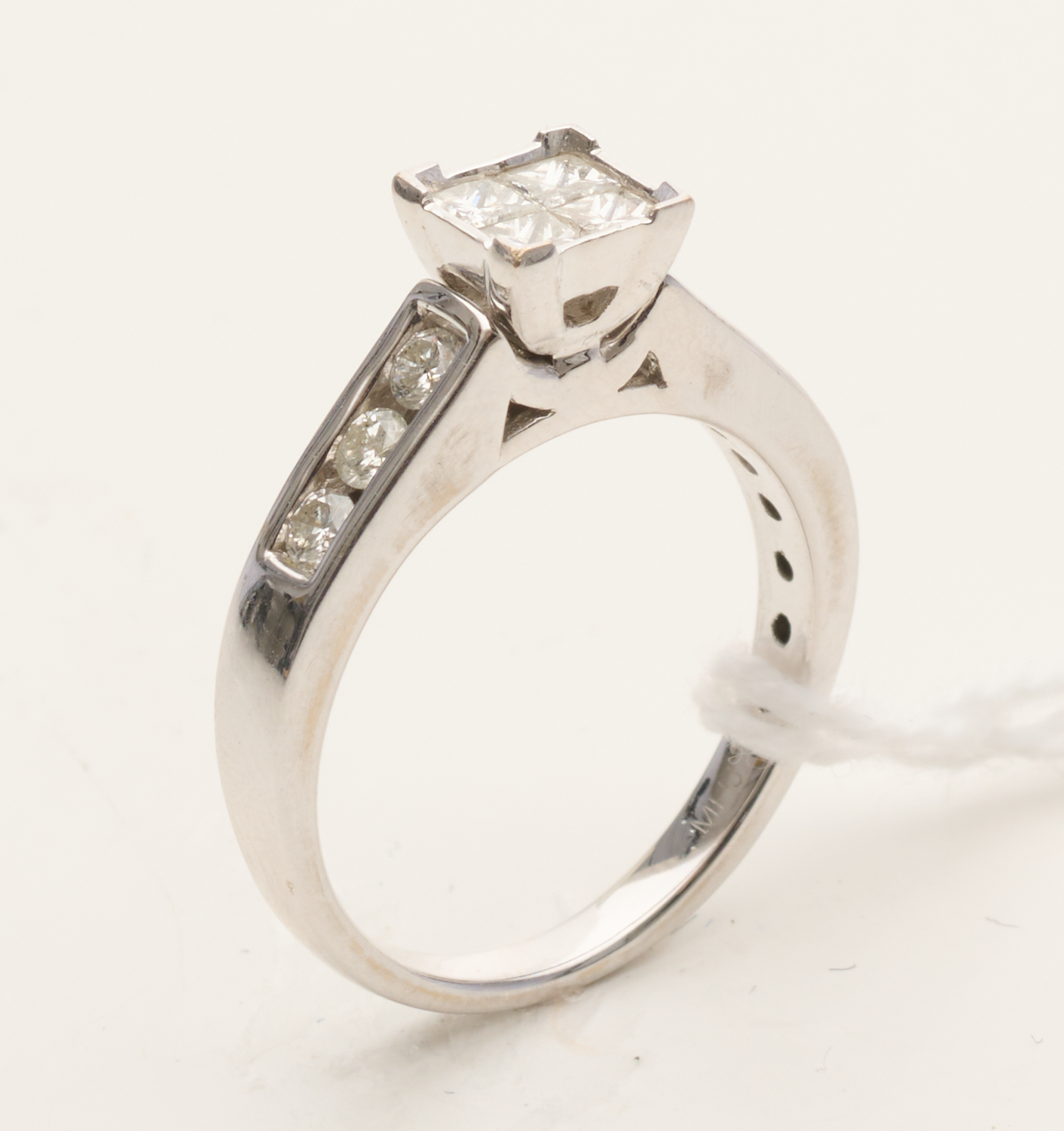 A DIAMOND RING IN 18CT WHITE GOLD, SIZE K, 4GMS