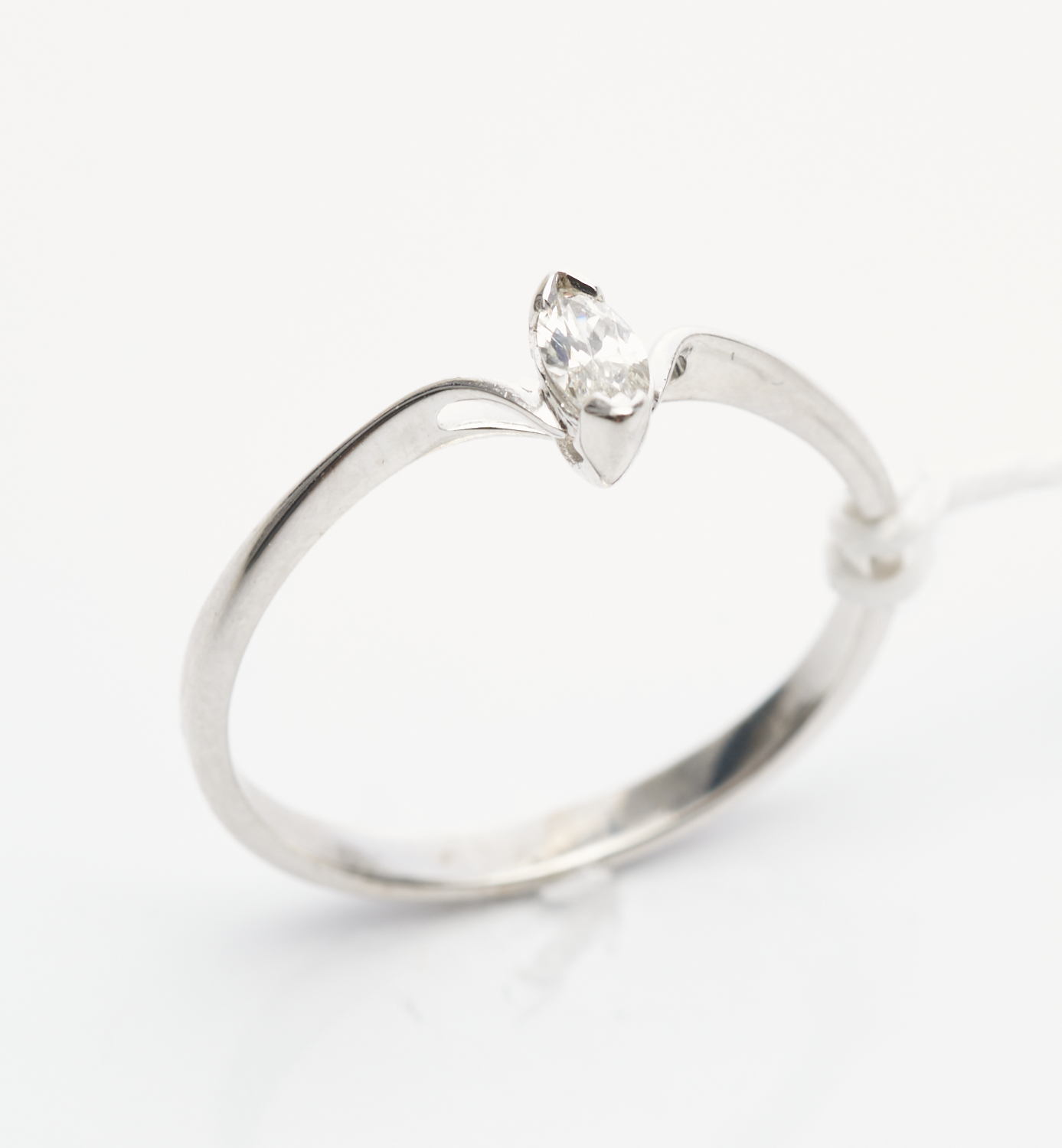 A MARQUISE CUT DIAMOND RING IN 14CT WHITE GOLD, THE DIAMOND ESTIMATED 0.10CT, SIZE P, 2.2GMS