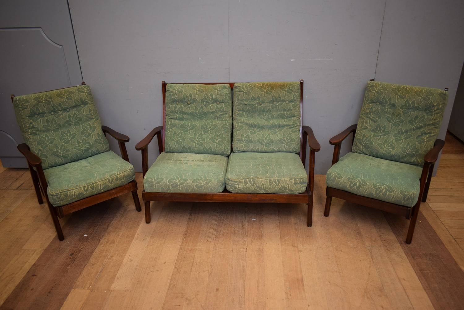 A THREE PIECE MID-CENTURY LOUNGE SUITE (A/F) (LEONARD JOEL DELIVERY SIZE: LARGE) (TWO SEATER 85H X 121W X 80D CM)