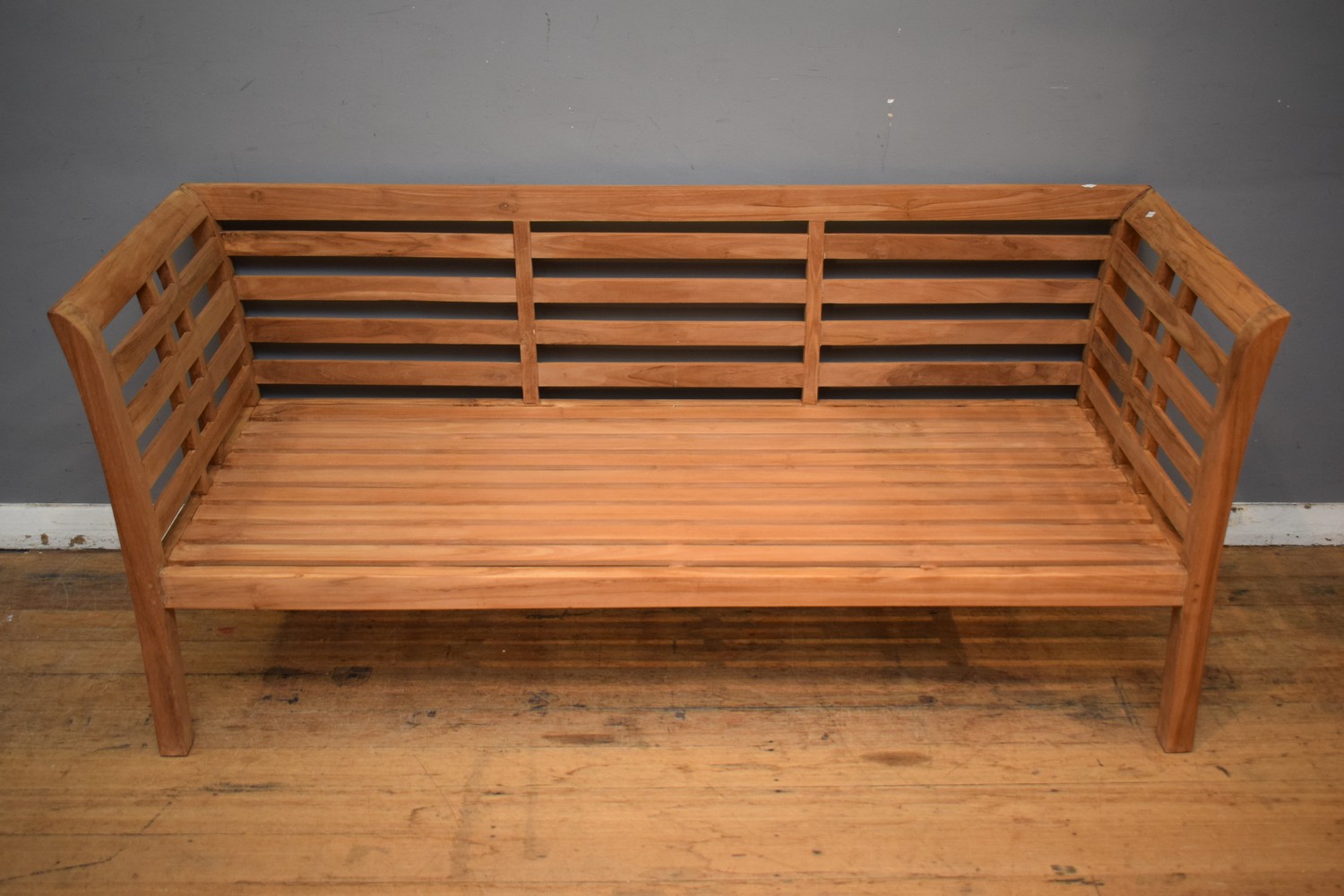 A DEEP SEAT TEAK BENCH SEAT H80 x W182 x D67cm