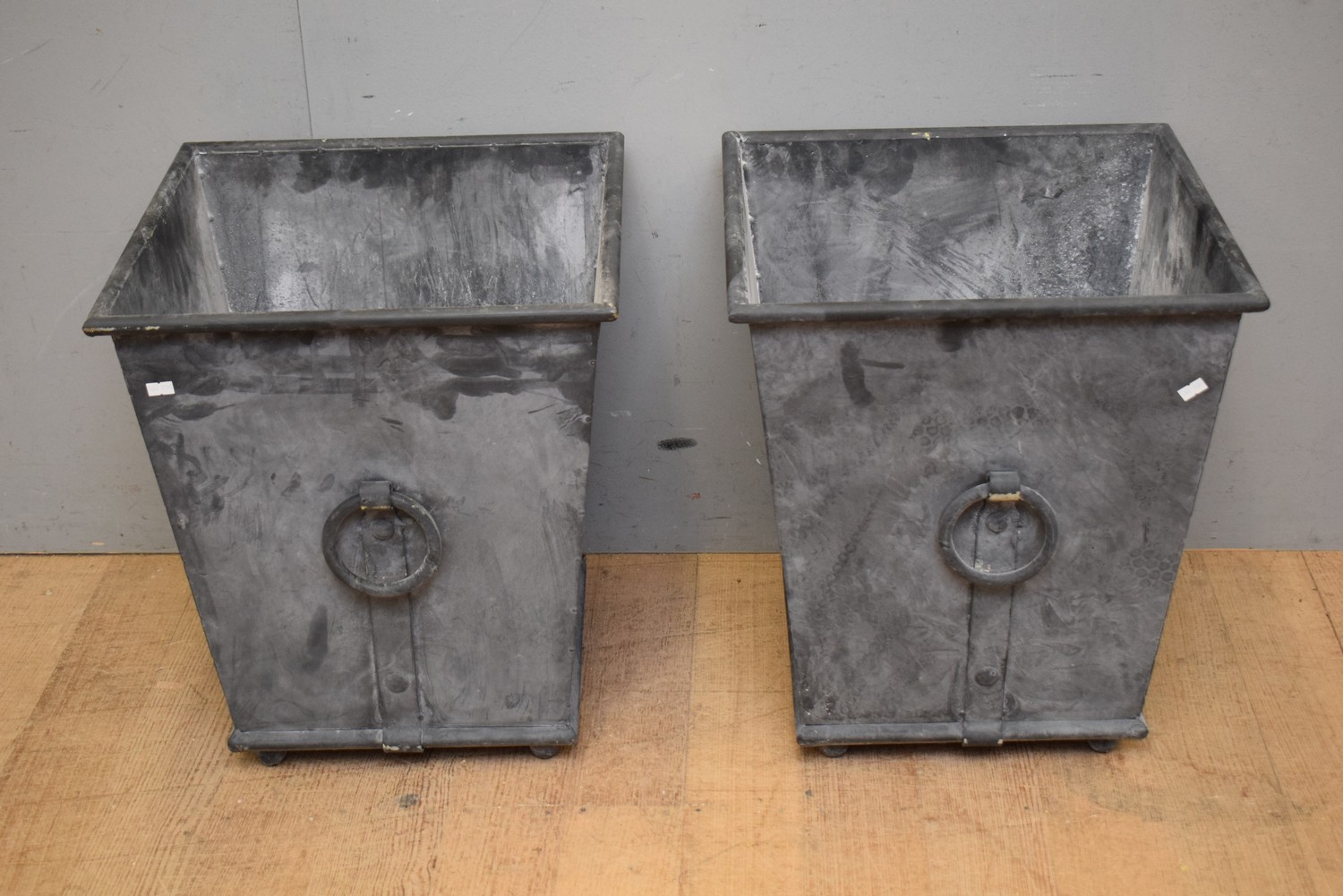 A PAIR OF METAL PLANTER BOXES (49H X 43W X 43D CM) (LEONARD JOEL DELIVERY SIZE: MEDIUM)