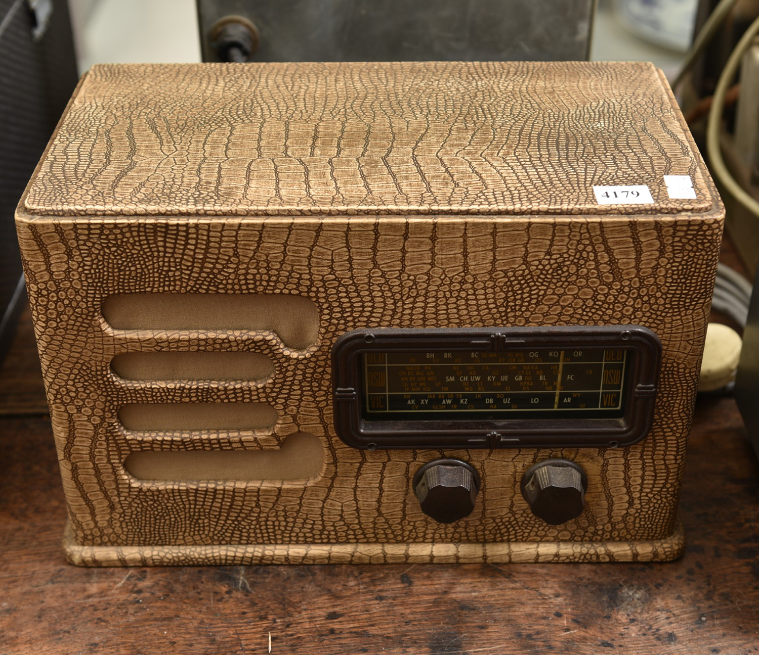 A CROCODILE SKIN STYLE VINTAGE RADIO, LEONARD JOEL LOCAL DELIVERY SIZE: SMALL