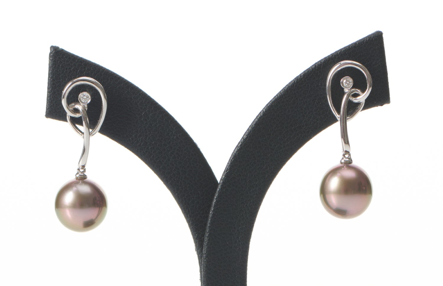 A PAIR OF TAHITIAN PEARL AND DIAMOND EARRINGS IN 18CT WHITE GOLD