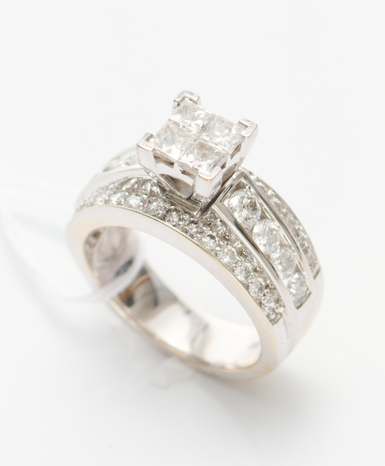 AN ILLUSION SET DIAMOND RING IN 14CT WHITE GOLD, SIZE P, 13.7GMS