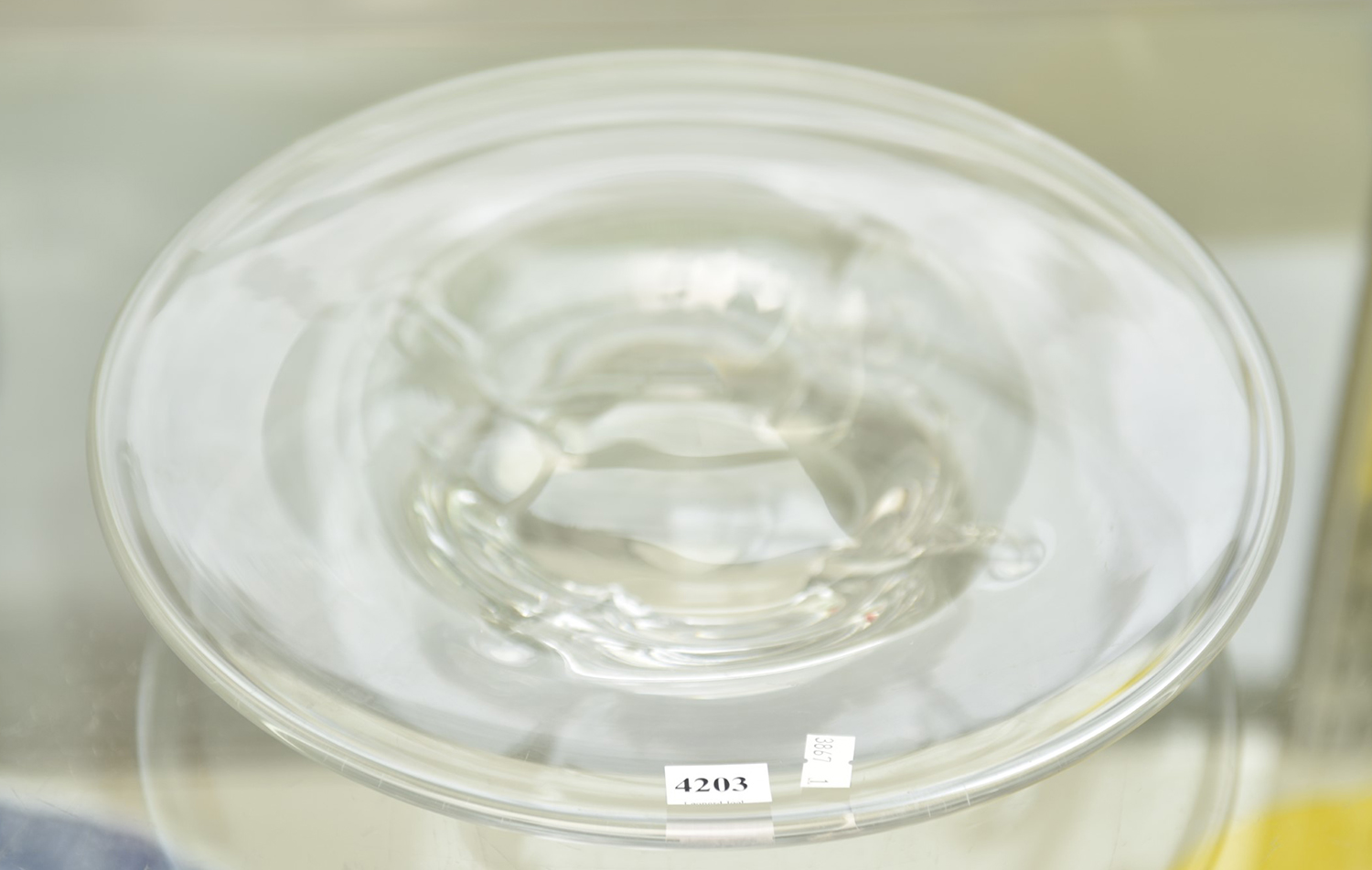 AN ORREFORS GLASS DISH, SIGNED TO BASE DIA.33CM, LEONARD JOEL LOCAL DELIVERY SIZE: SMALL