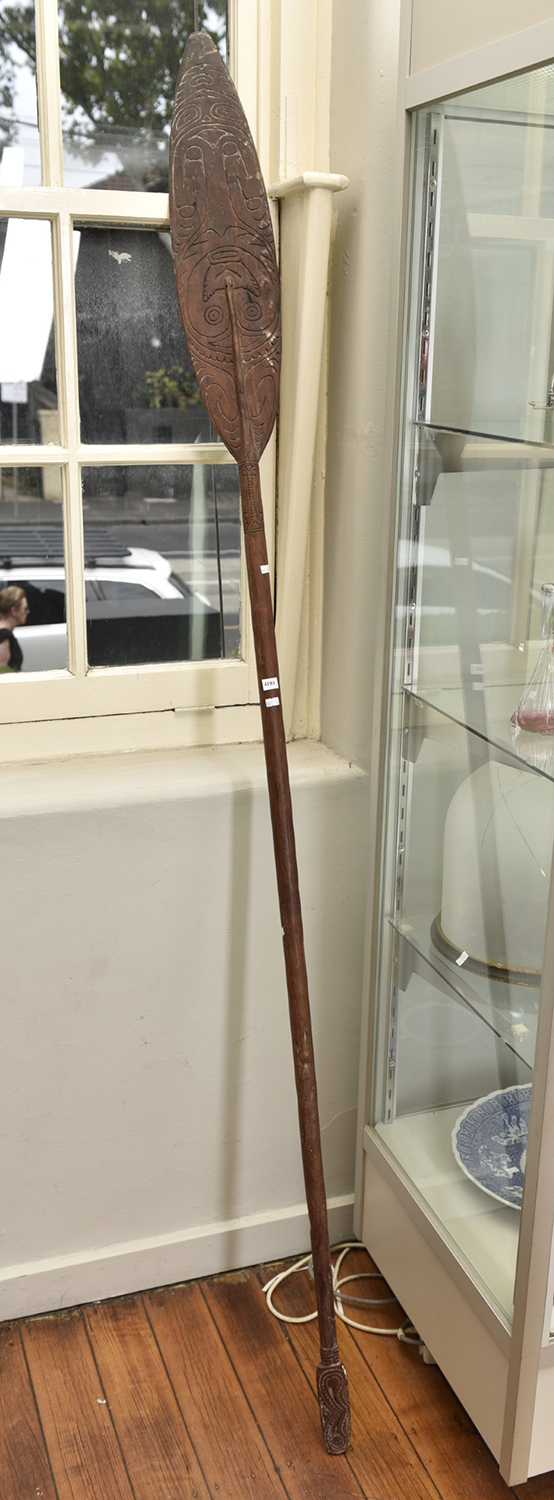 A SEPIK RIVER CARVED PADDLE, LEONARD JOEL LOCAL DELIVERY SIZE: SMALL