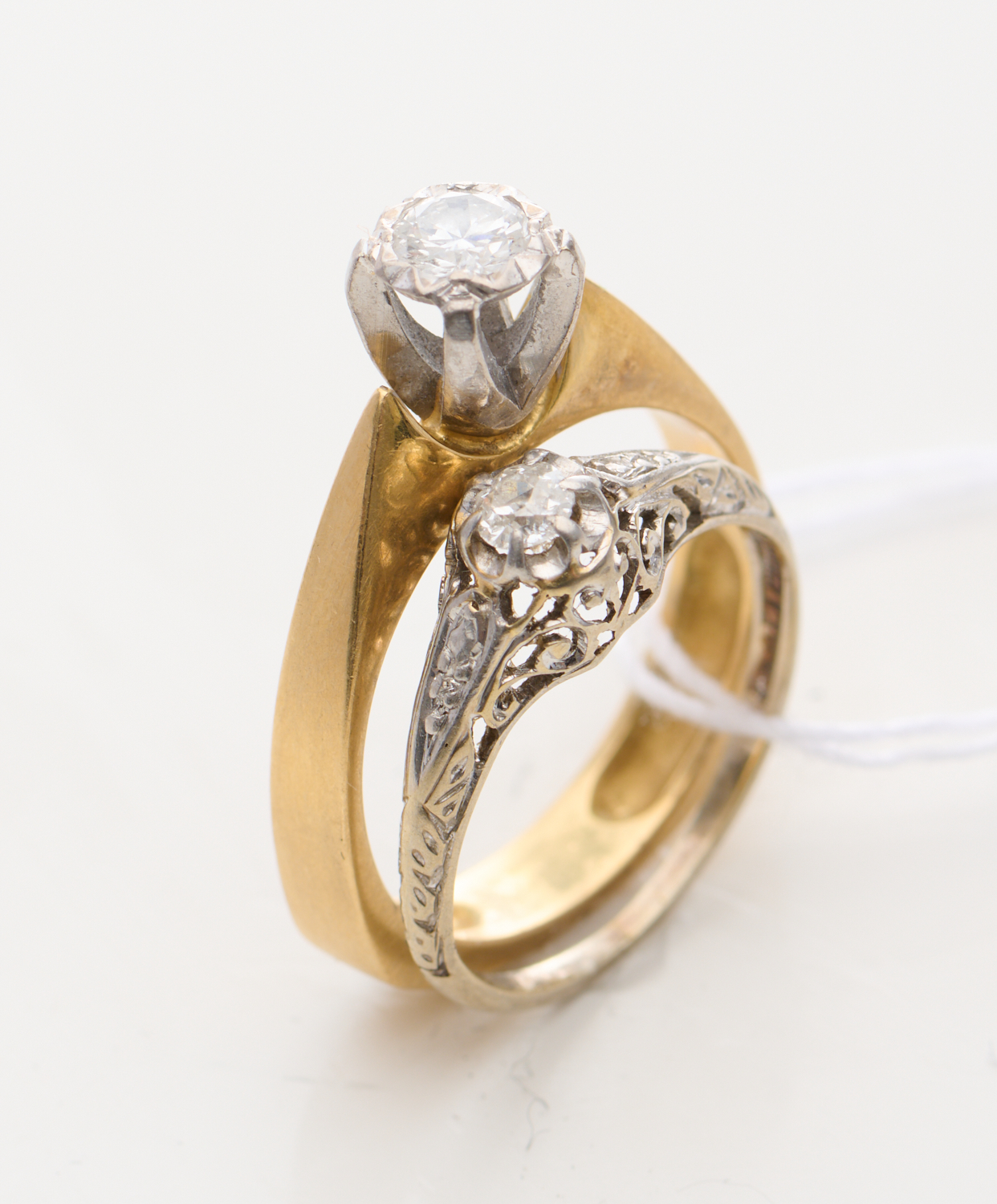 A COLLECTION OF TWO DIAMOND RINGS IN 18CT GOLD AND PLATINUM, SIZES H-M, 6.9GMS
