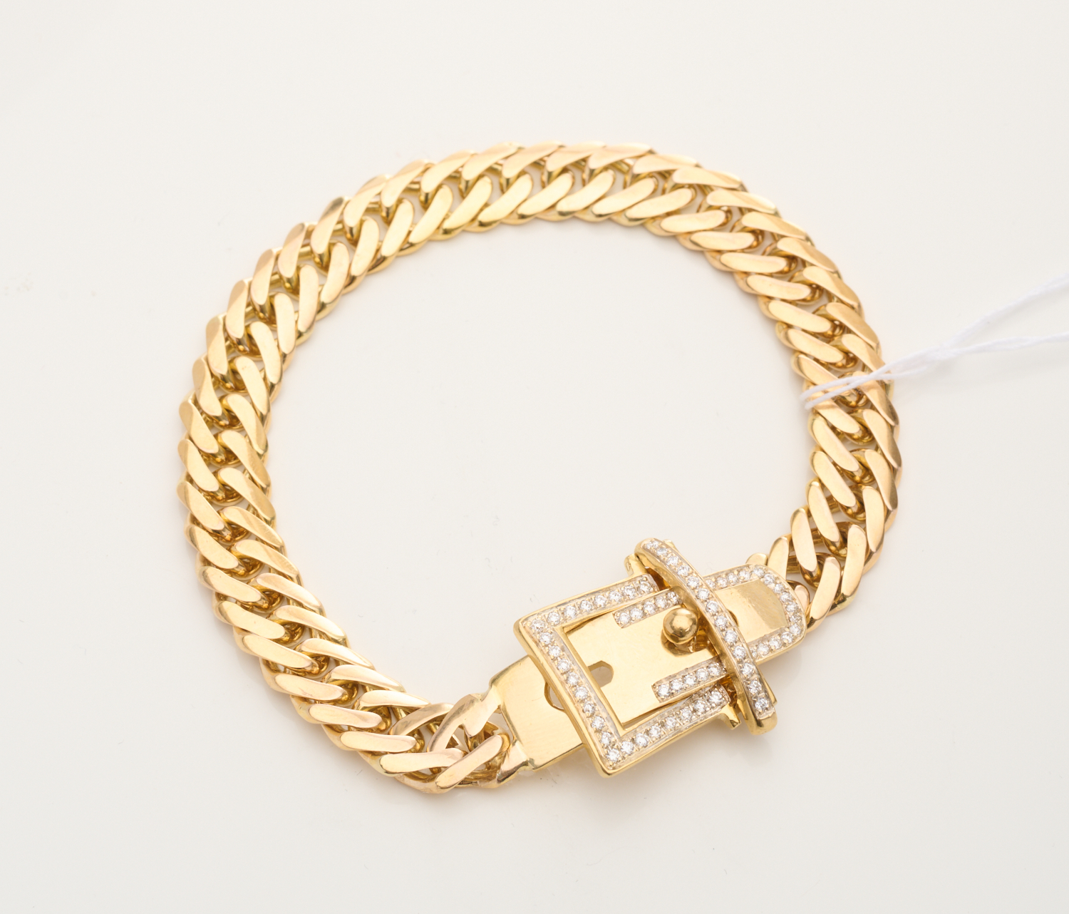A DIAMOND BUCKLE BRACELET IN 9CT GOLD, LENGTH 23CMS, 36GMS