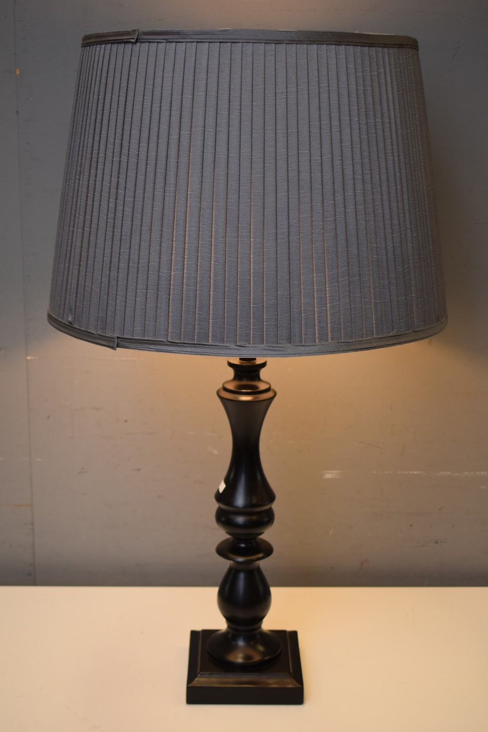 AN EBONISED TIMBER TABLE LAMP WITH SHADE (H86 X D49 CM) (LEONARD JOEL DELIVERY SIZE: SMALL)