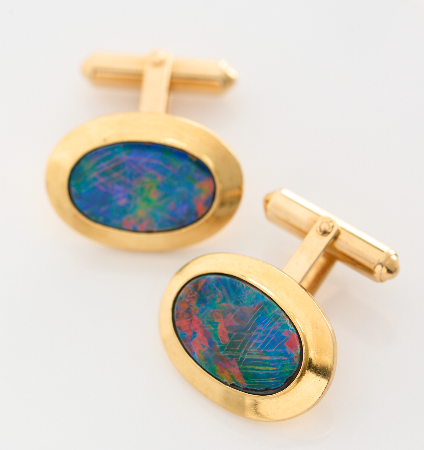 A PAIR OF OPAL TRIPLET CUFFLINKS IN 12CT GOLD