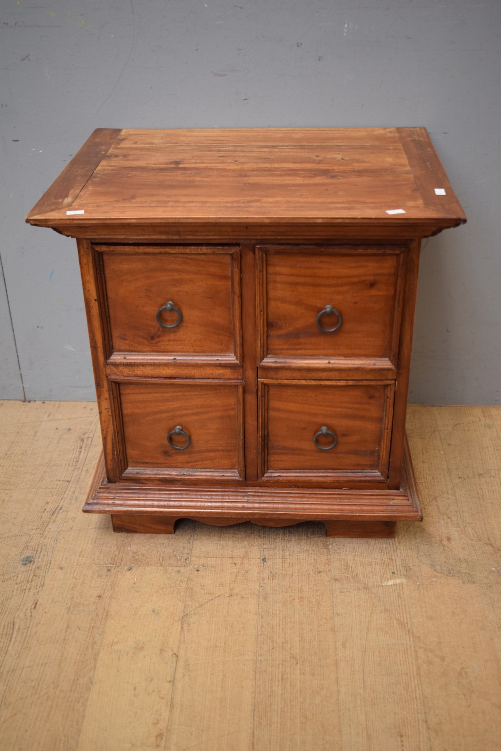 A FOUR DRAWER TIMBER CUPBOARD (A/F) (H54 X W52 X D42 CM) (LEONARD JOEL DELIVERY SIZE: MEDIUM)