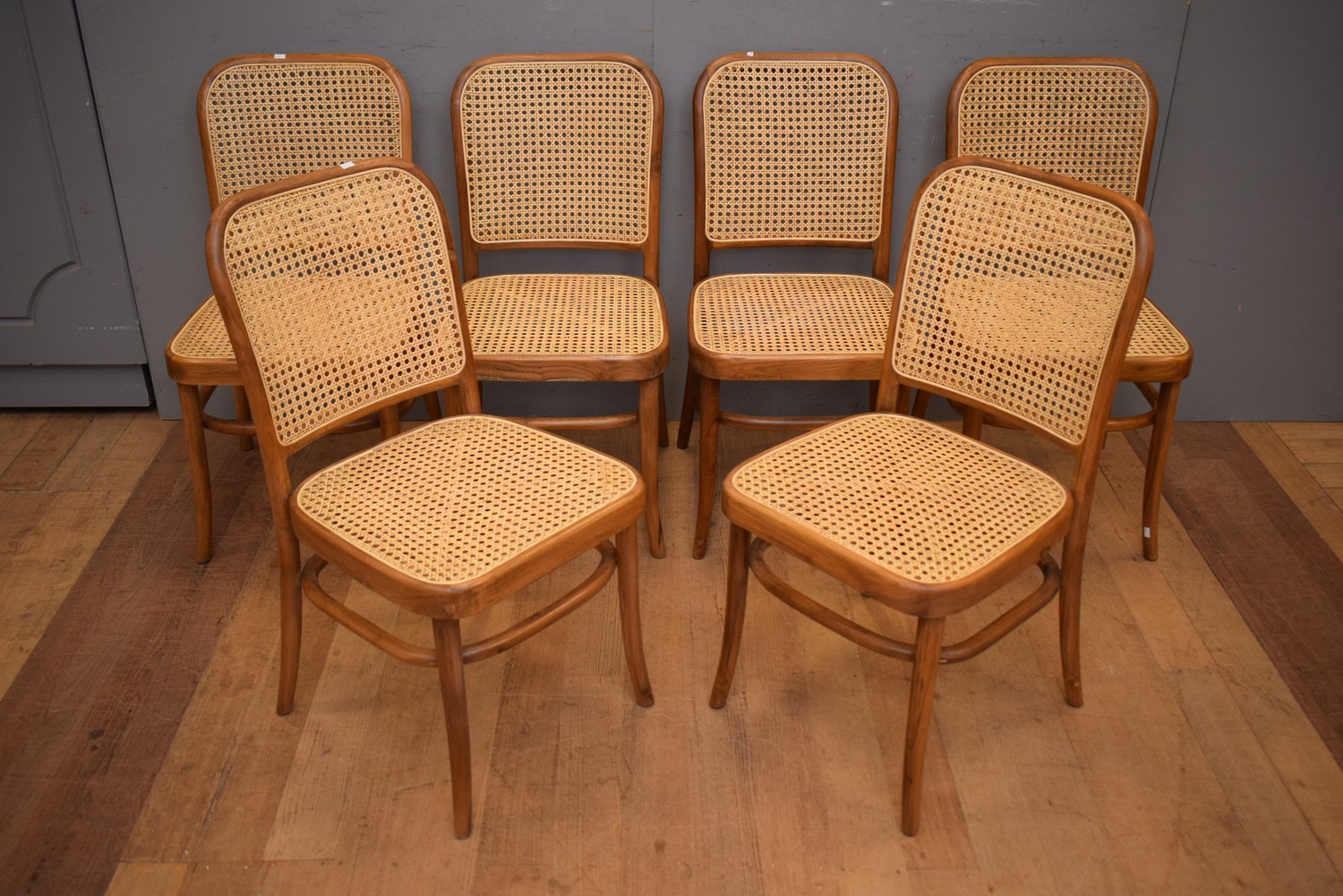 A SET OF SIX MID-CENTURY STYLE HOFFMAN STYLE CHAIRS (88H x 45W x 57D CM) (LEONARD JOEL DELIVERY SIZE: LARGE)