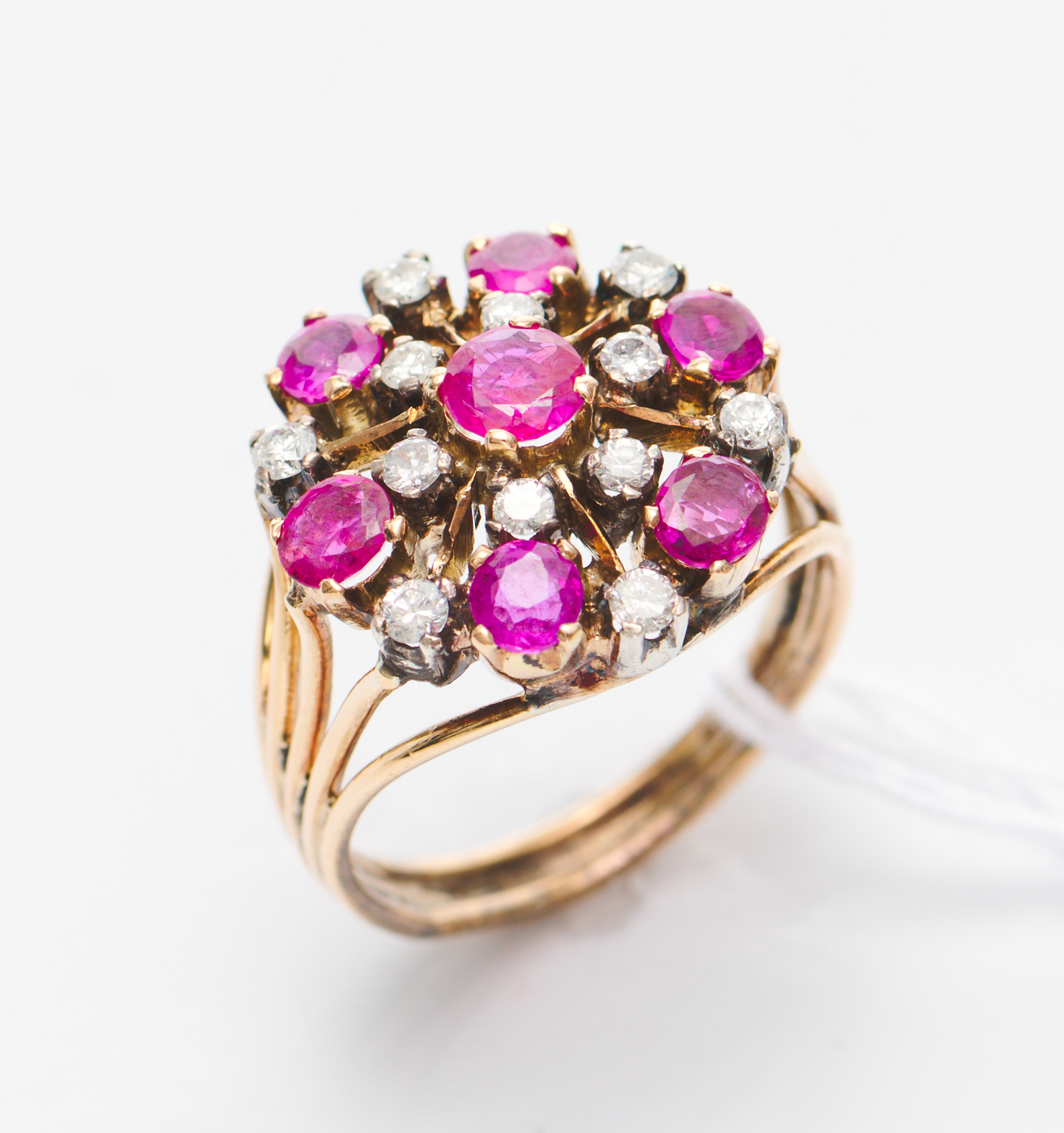 A RUBY AND DIAMOND RING IN 14CT GOLD, SIZE L, 4.9GMS