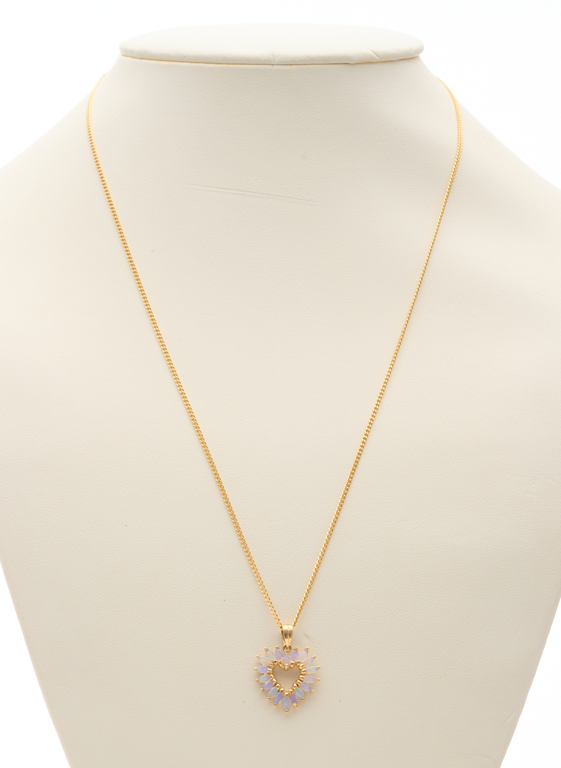 A HEART PENDANT IN 14CT GOLD COMPRISING CRYSTAL OPALS CUT EN CABOCHON, TO A DISPLAY CHAIN