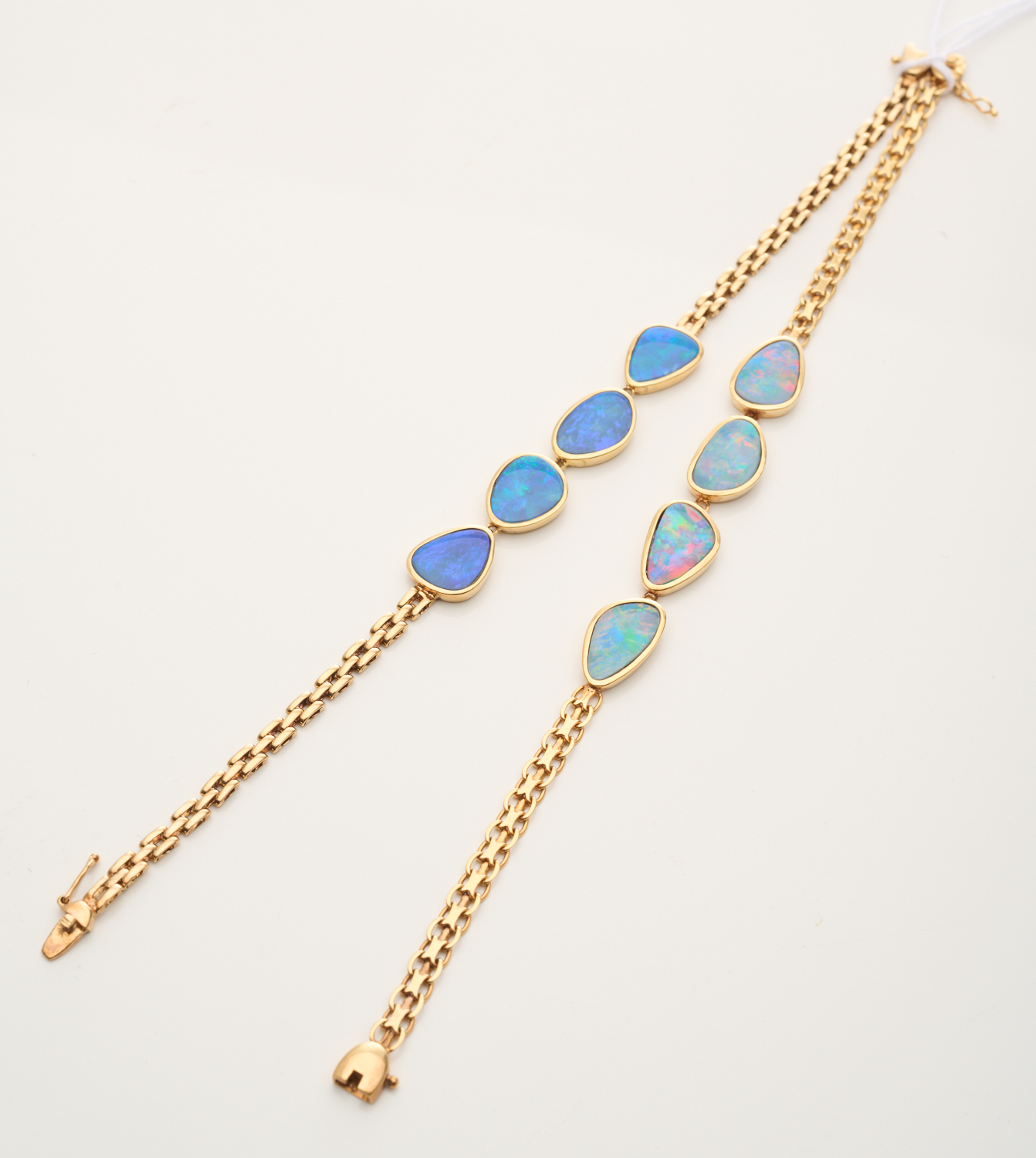 The setting of the opals makes it very hard for us to confirm if they are solid or doublets/triplet.