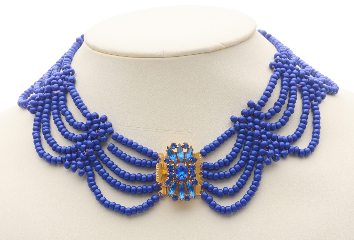 A VINTAGE EAST EUROPEAN BLUE BEAD COLLAR NECKLACE