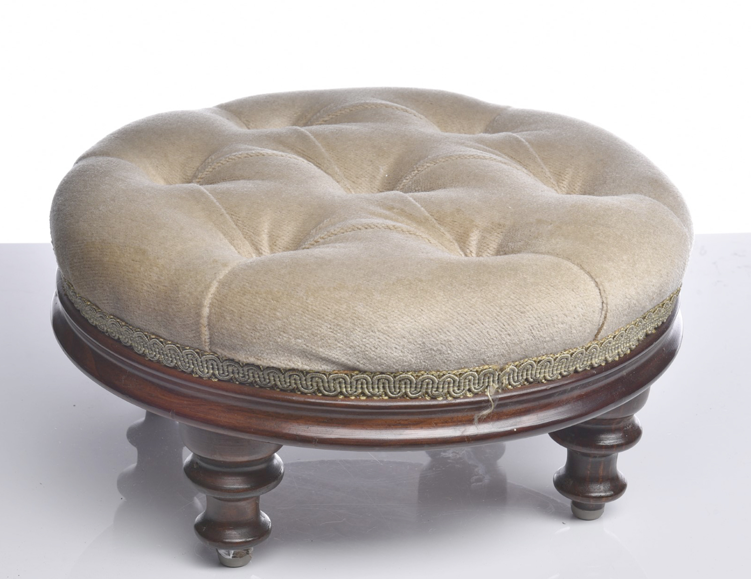 A VELVET FOOTSTOOL, LEONARD JOEL LOCAL DELIVERY SIZE: SMALL
