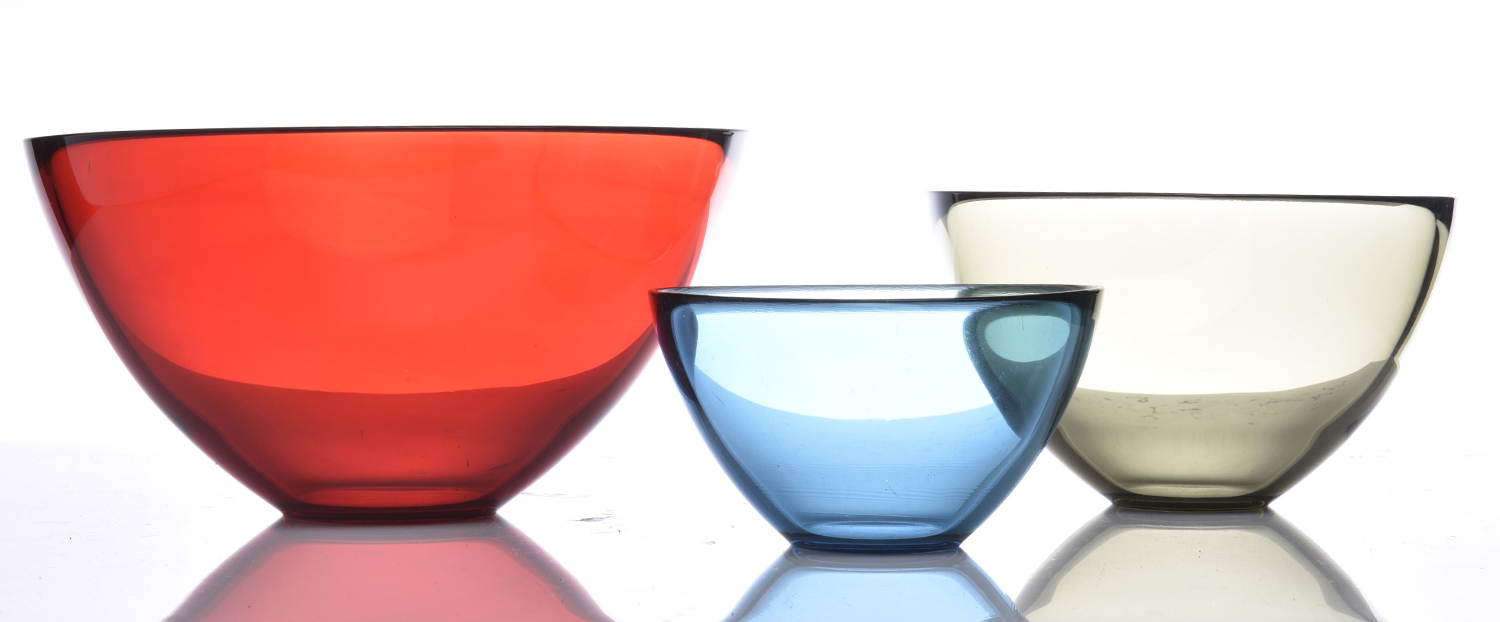THREE 1950S SWEDISH ORREFORS FUGA BOWLS BY SVEN PALMQUIST (21 CM D), LEONARD JOEL LOCAL DELIVERY SIZE: SMALL