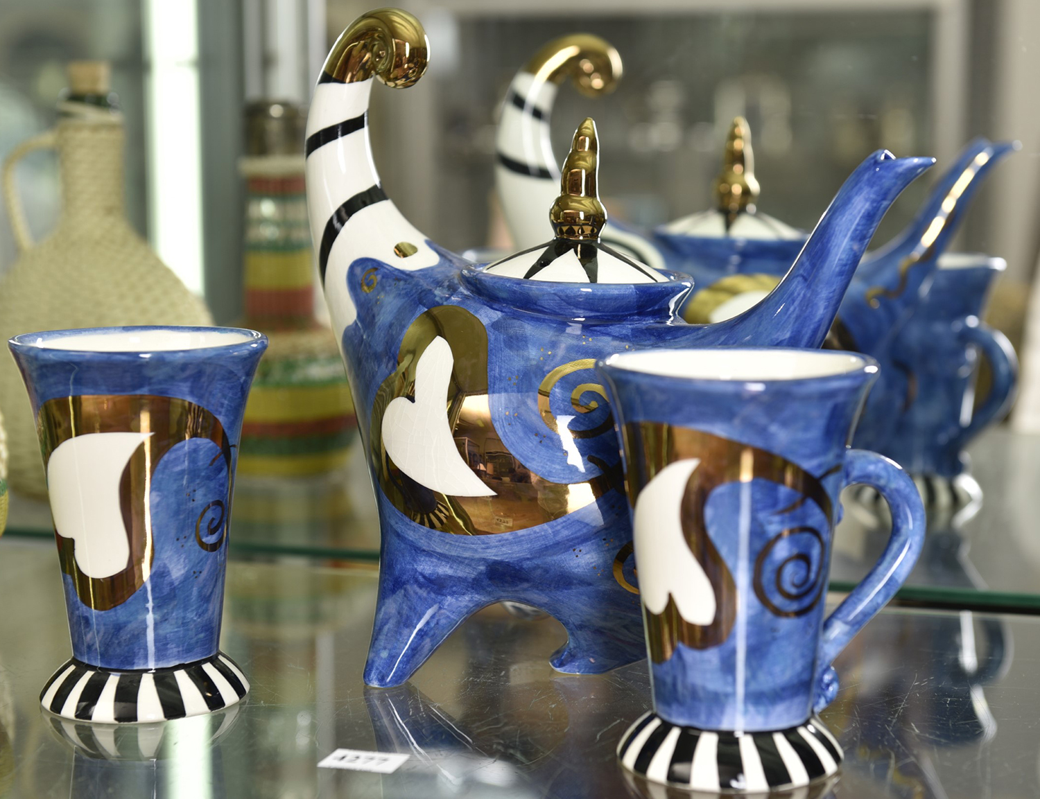 AN AUSTRALIAN ART POTTERY TEAPOT AND TWO MUGS BY JAN MAIR 2000 (26 CM H), LEONARD JOEL LOCAL DELIVERY SIZE: SMALL