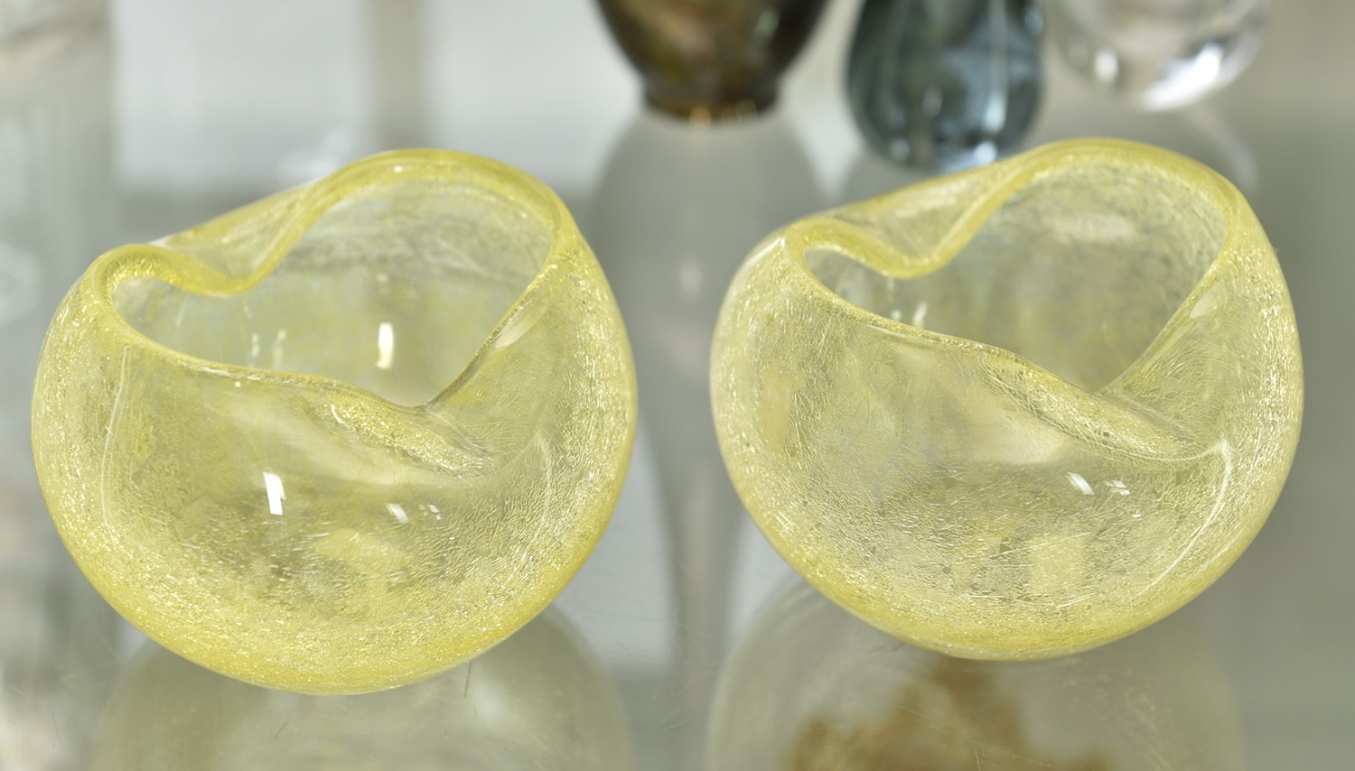 TWO 1950S HUNGARIAN KARCAG NEON YELLOW GLASS BOWLS (12 CM D), LEONARD JOEL LOCAL DELIVERY SIZE: SMALL