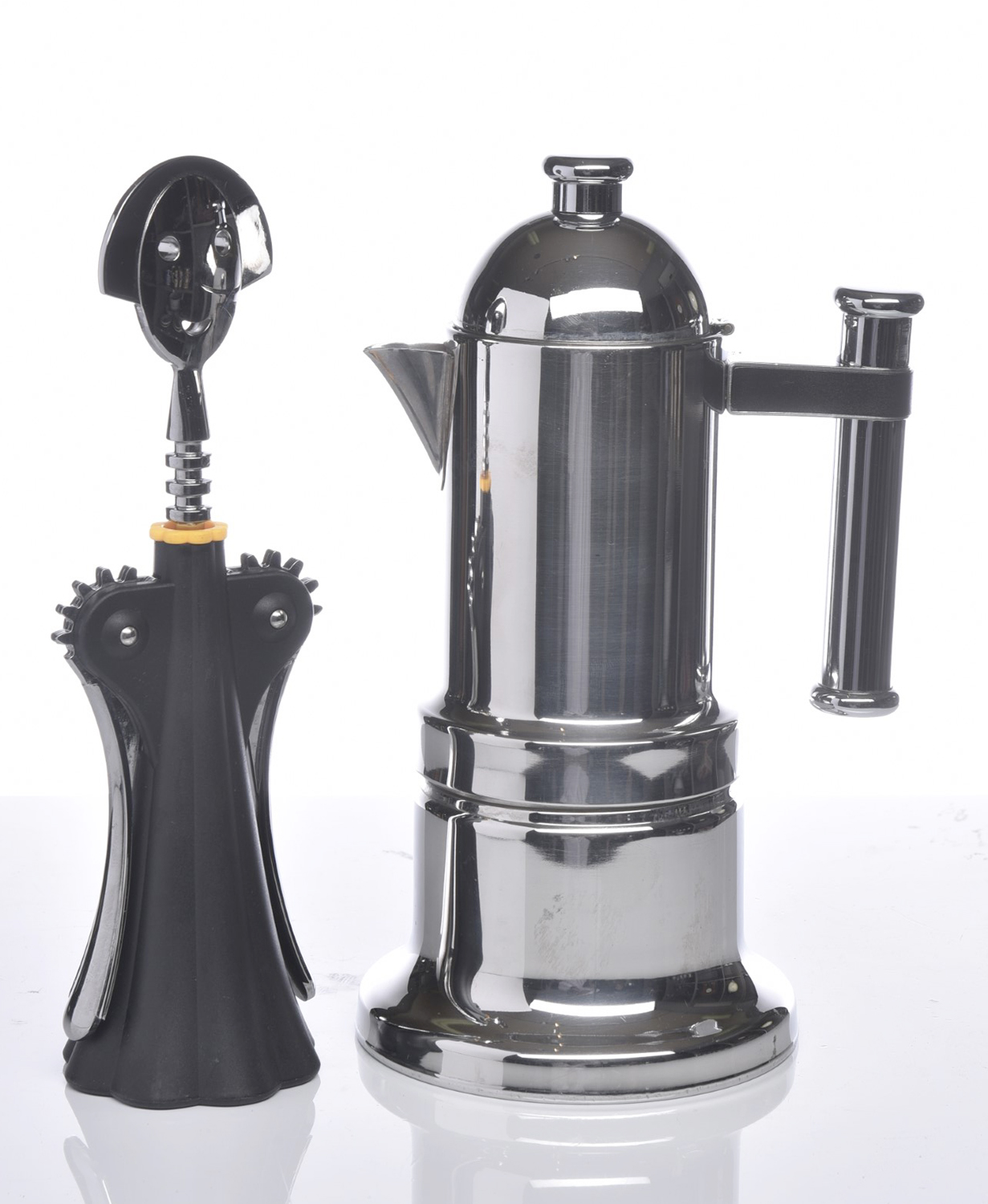 AN ITALIAN VEV VIGANO ESPRESSO MAKER AND AN ALESSI ANNA G BOTTLE OPENER (25 CM H), LEONARD JOEL LOCAL DELIVERY SIZE: SMALL