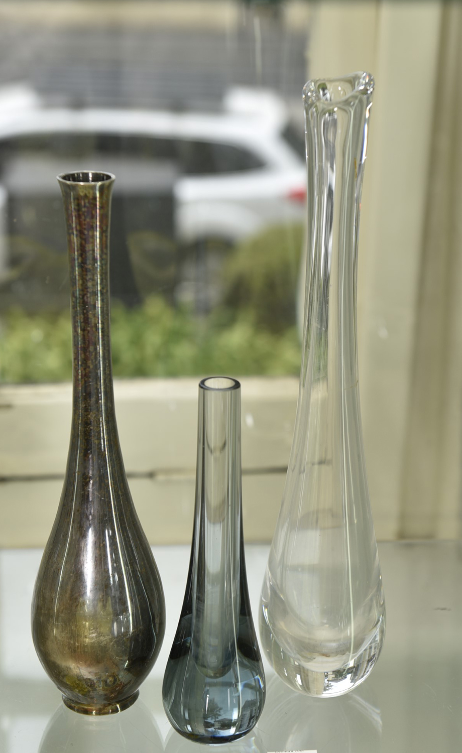 A 1950S SWEDISH ORREFORS VASE BY NILS LANDBERG, A WHITEFRIARS BUD VASE AND ANOTHER VASE (33 CM H), LEONARD JOEL LOCAL DELIVERY SIZE: SMALL