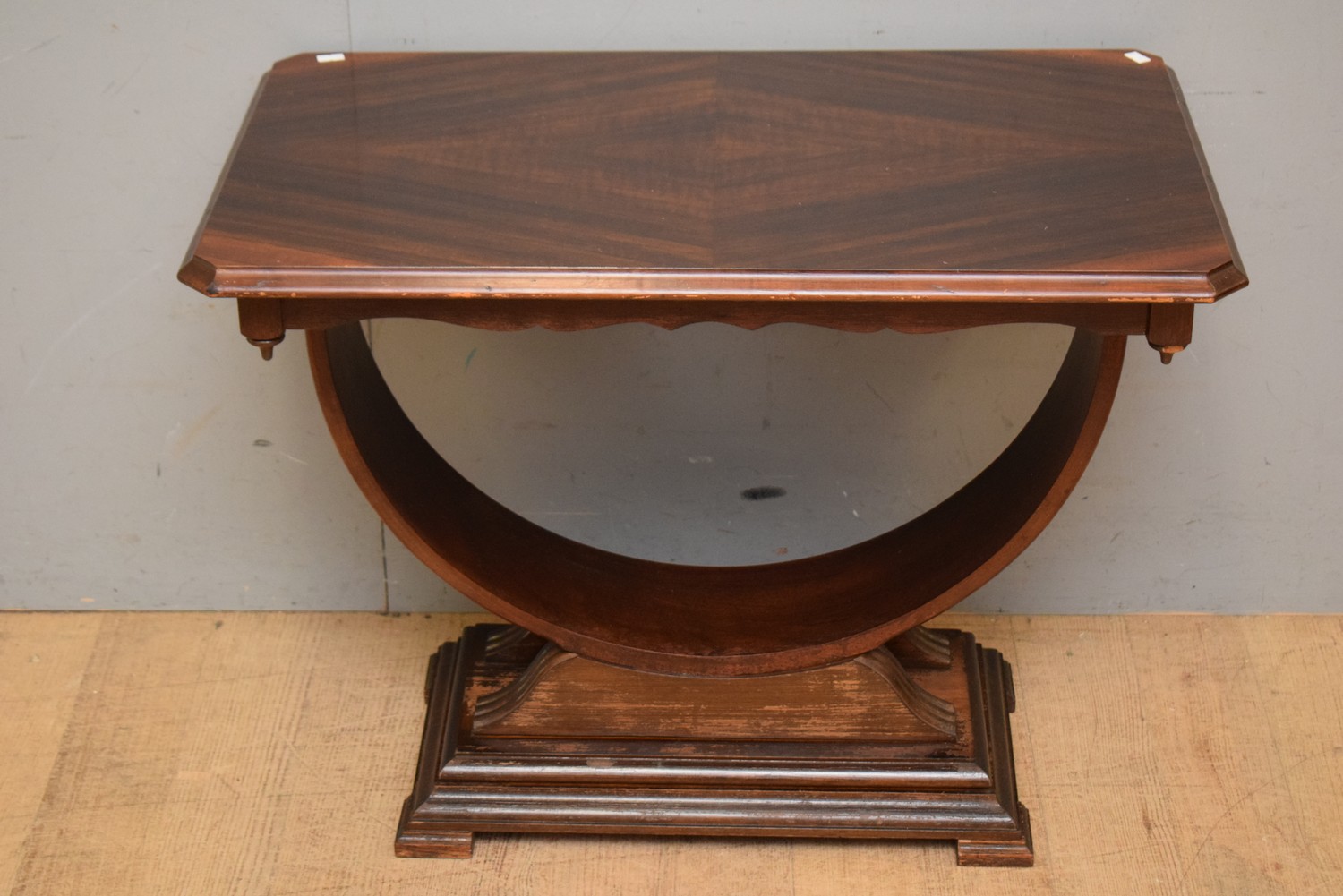 AN ART DECO WALNUT HOOP OCCASIONAL TABLE (A/F) (58H X 77W X 46D CM) (LEONARD JOEL DELIVERY SIZE: MEDIUM)