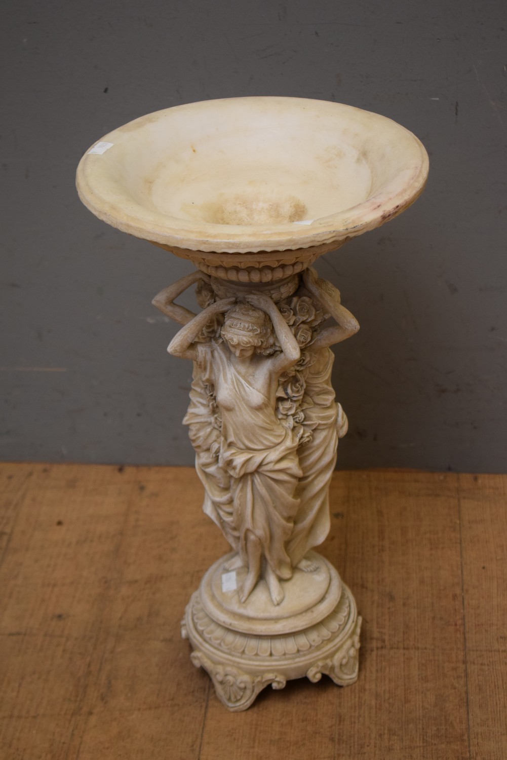 AN ORNATELY CARVED GARDEN FEATURE OF THREE MAIDENS (47H X 26D CM) (LEONARD JOEL DELIVERY SIZE: SMALL)