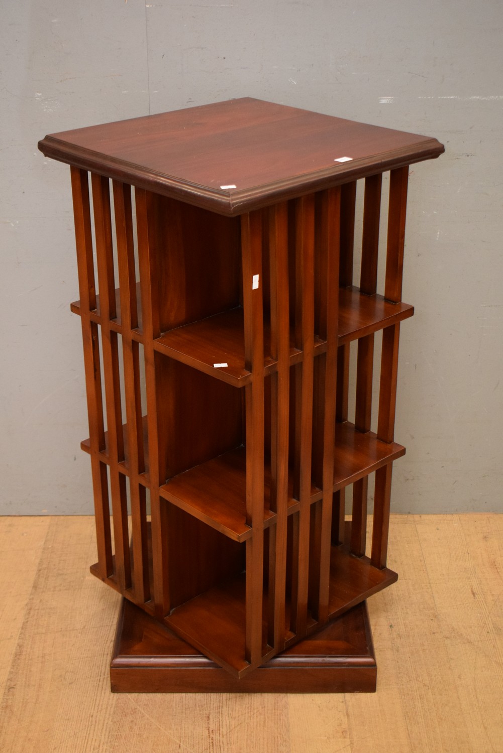 A SOLID MAHOGANY THREE TIER ROTATING BOOKSHELF (101H x 50W x 50D CM) (LEONARD JOEL DELIVERY SIZE: LARGE)