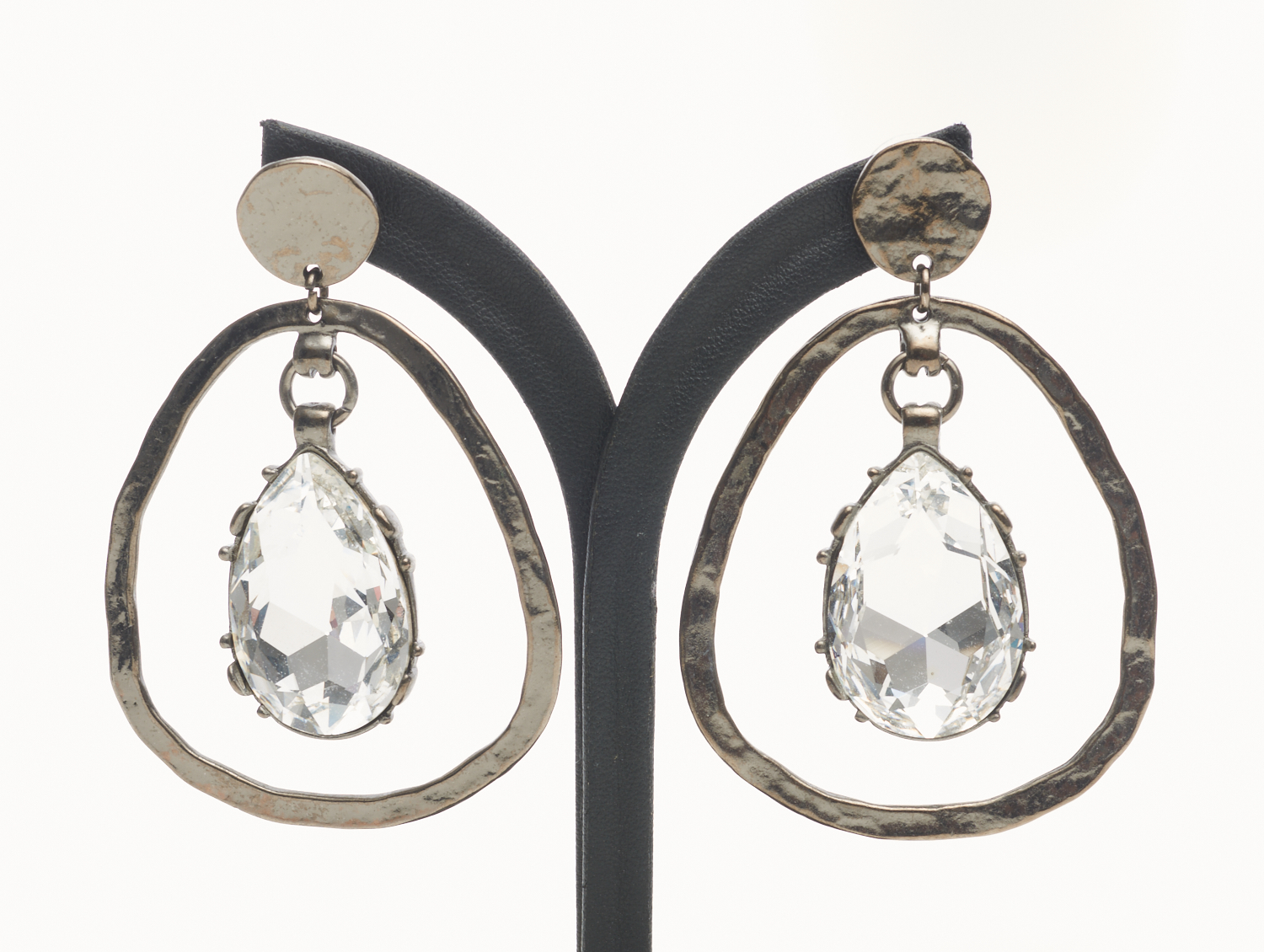A PAIR OF PASTE SET EARRINGS BY MEZI, TO POST FITTINGS, LENGTH APPROXIMATELY 7CM