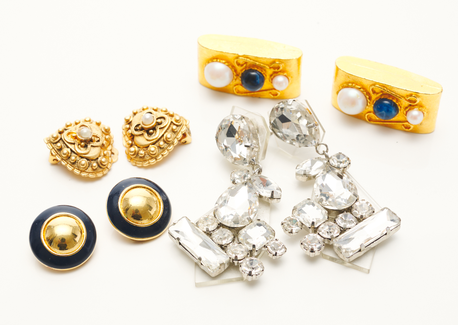A COLLECTION OF FOUR COSTUME EARRINGS, WITH CLIP AND POST FITTINGS