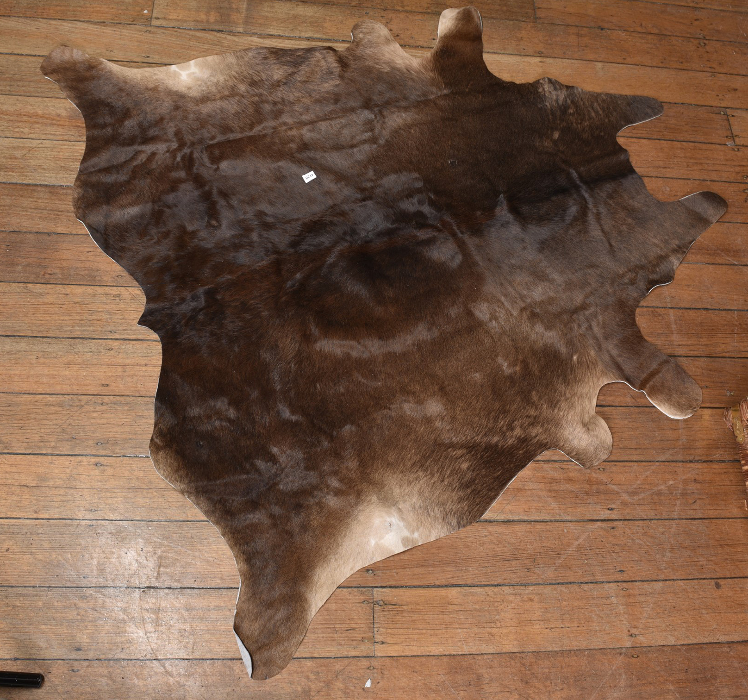 A MID SIZED BROWN COWHIDE, LEONARD JOEL LOCAL DELIVERY SIZE: SMALL