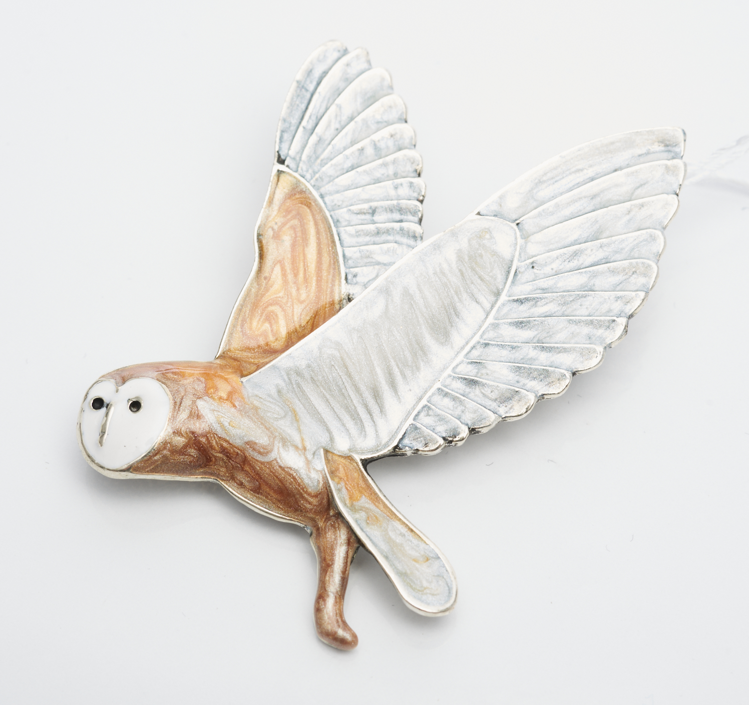 AN ENAMEL COSTUME BROOCH FEATURING AN OWL, 3.8CM X 5.9CM