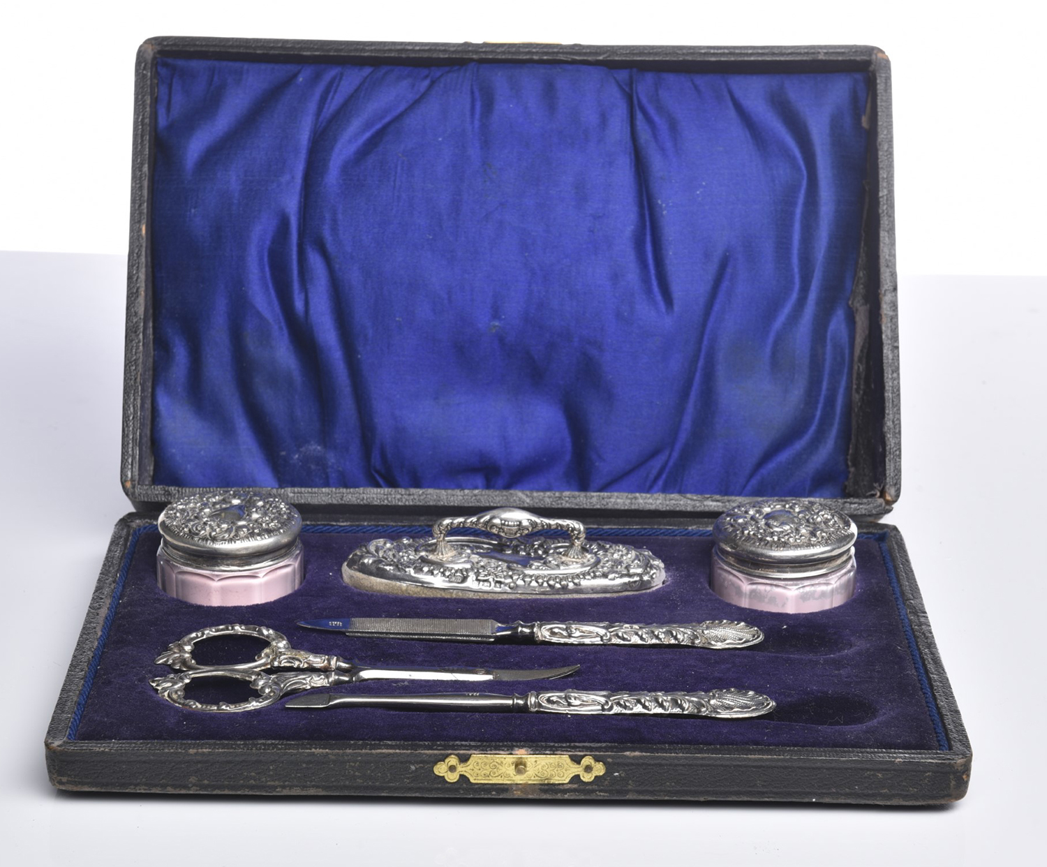 A CASED STERLING SILVER VANITY SET, LEONARD JOEL LOCAL DELIVERY SIZE: SMALL
