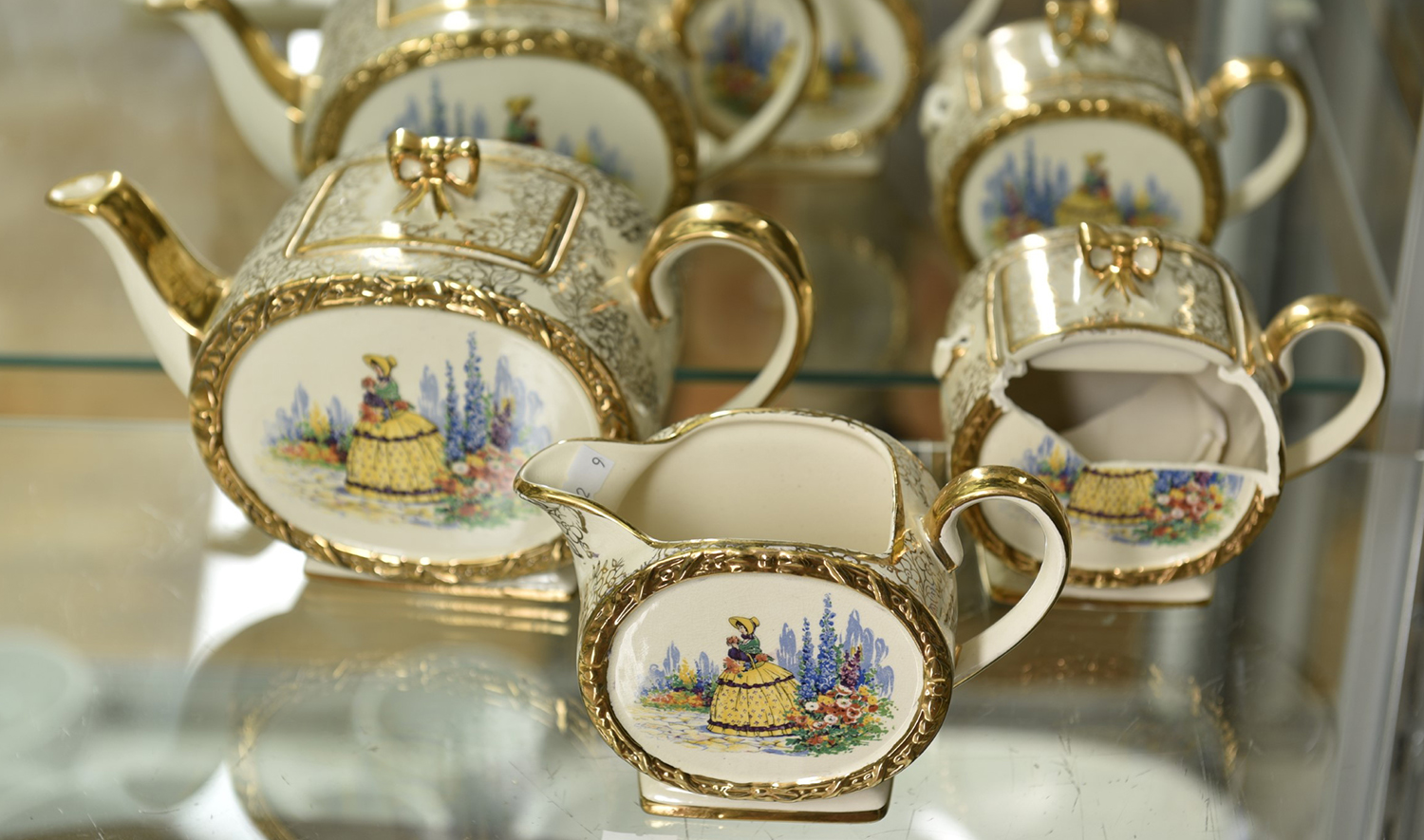 A SADLER TEAPOT AND CREAMER (JUG A/F), LEONARD JOEL LOCAL DELIVERY SIZE: SMALL