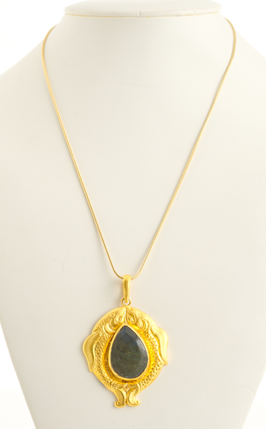 A TIBETAN STONE SET PENDANT TO A GILDED SETTING
