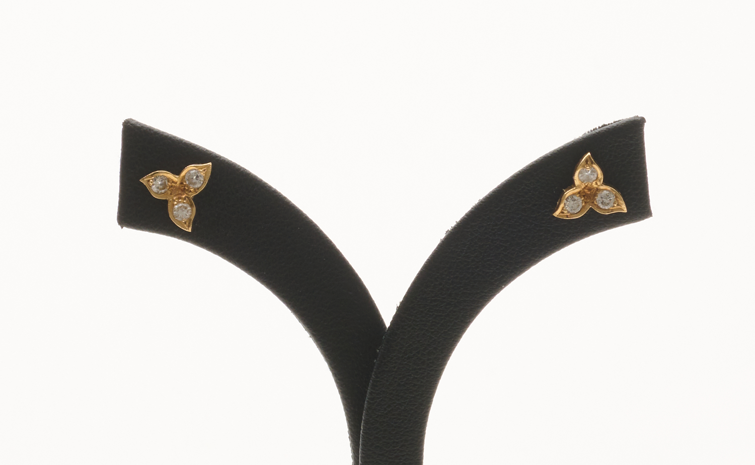 A PAIR OF DIAMOND TREFOIL EARRINGS IN 18CT GOLD, TO POST AND BUTTERFLY FITTINGS, 1.6GMS