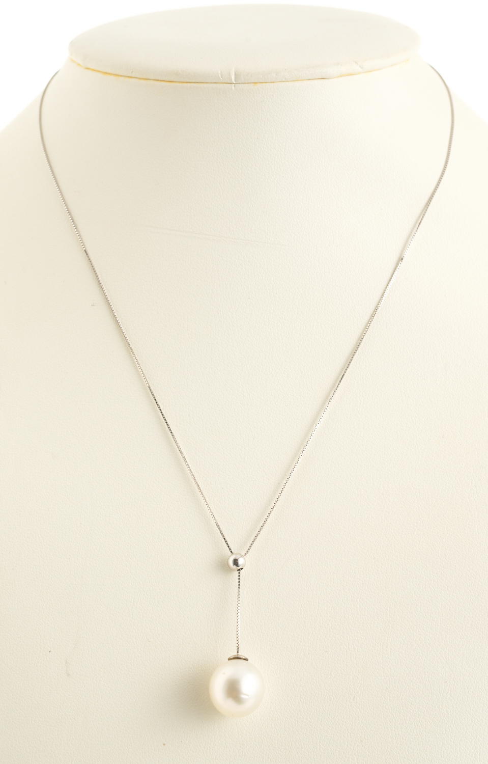A PEARL LARIAT NECKLACE IN 18CT WHITE GOLD, 12MM, LENGTH 420 MM.