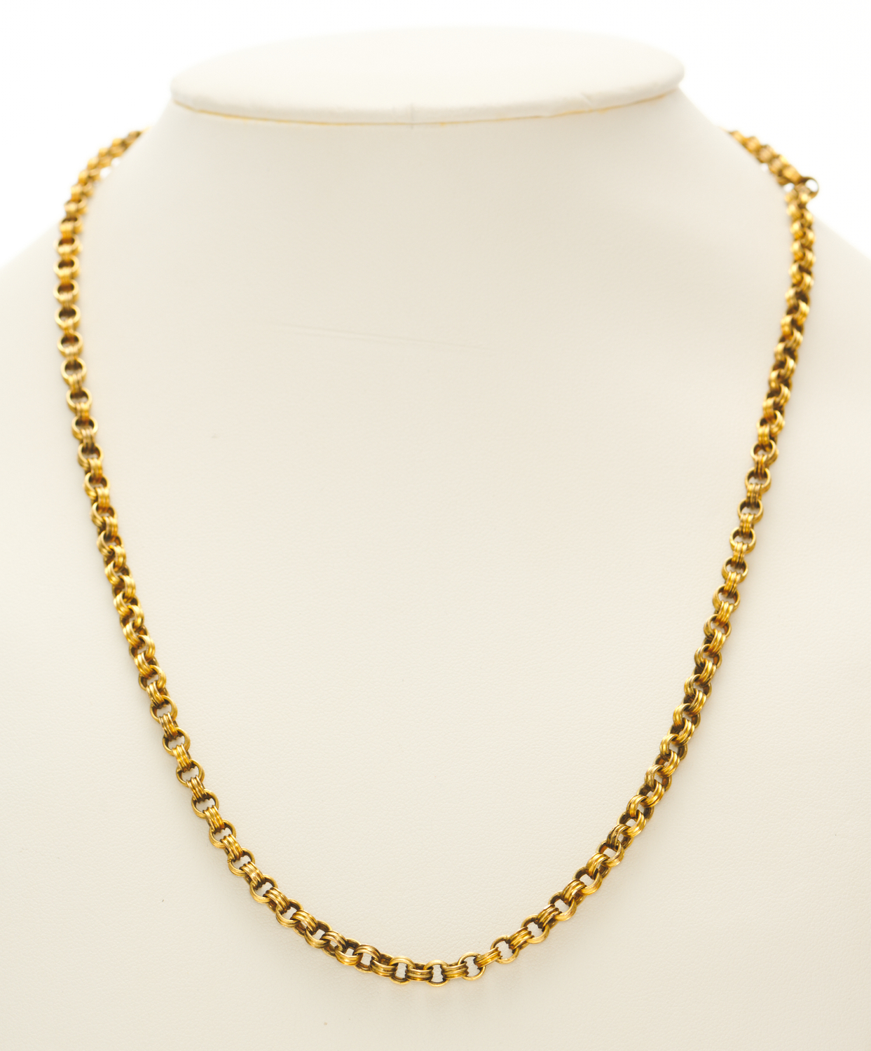 AN ANTIQUE BELCHER LINK NECKLACE IN GILT, LENGTH 53CMS
