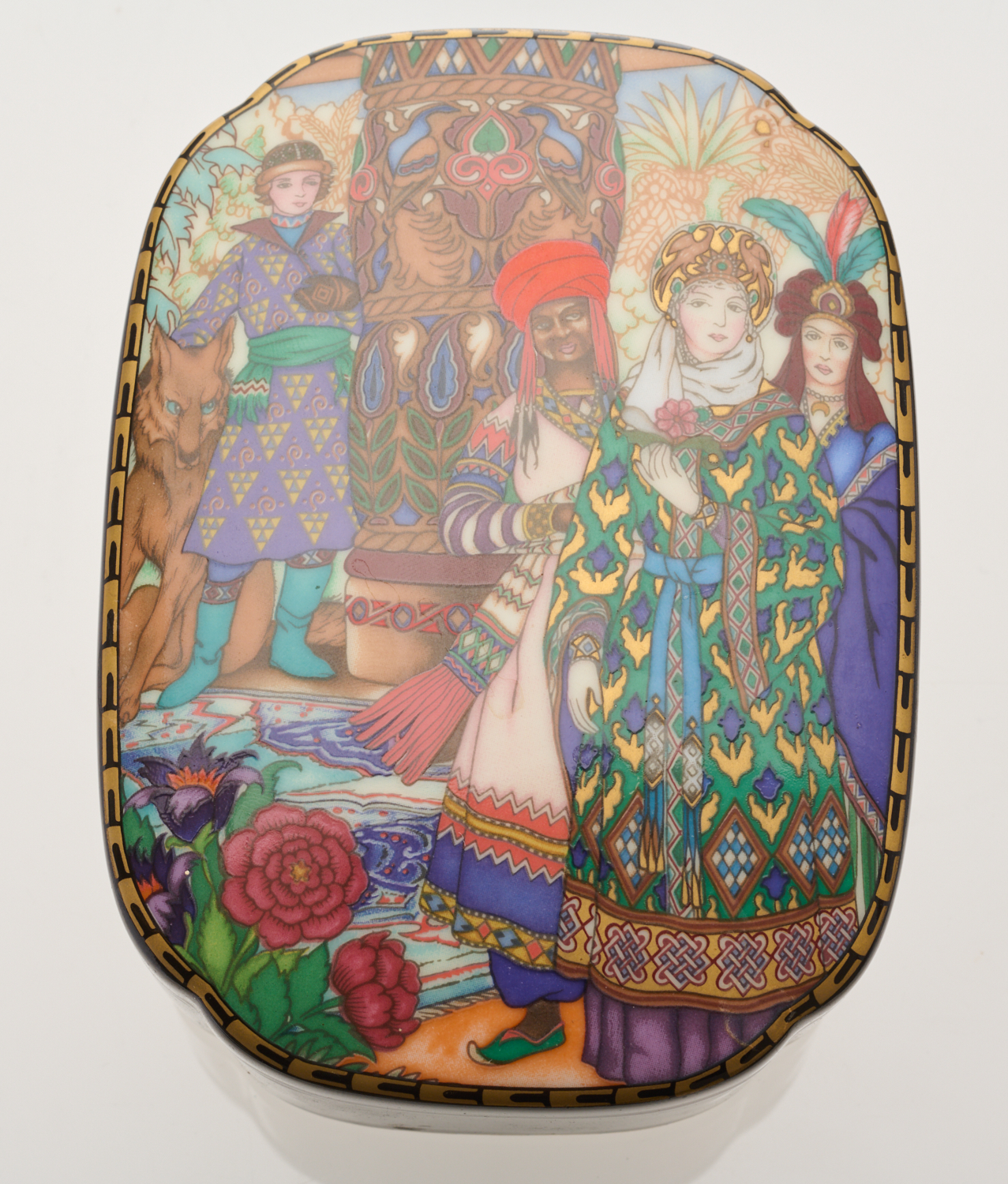 A VILLEROY & BOCH PORCELAIN JEWELLERY BOX, 'RUSSIAN FAIRY TALE' SERIES, 13 X 9 X 4cm