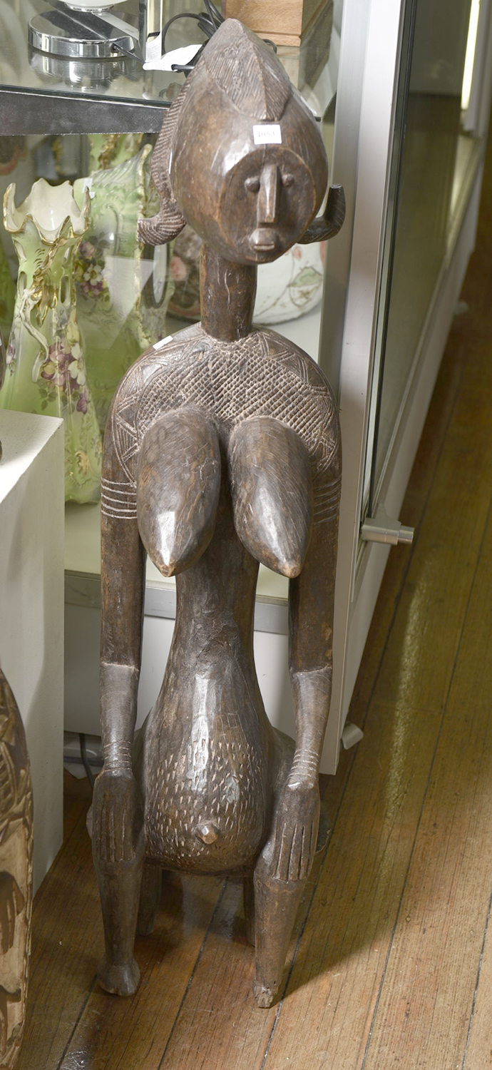 A WEST AFRICAN CARVED FEMALE FIGURE H.113CM, LEONARD JOEL LOCAL DELIVERY SIZE: MEDIUM