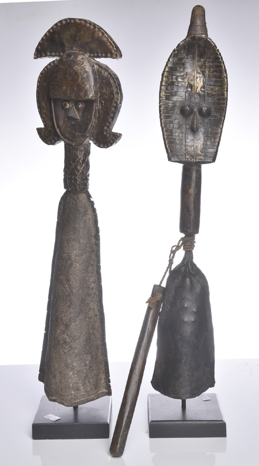 PAIR OF FIGURAL CAST METAL BELLS, AFRICAN H.52CM, LEONARD JOEL LOCAL DELIVERY SIZE: SMALL