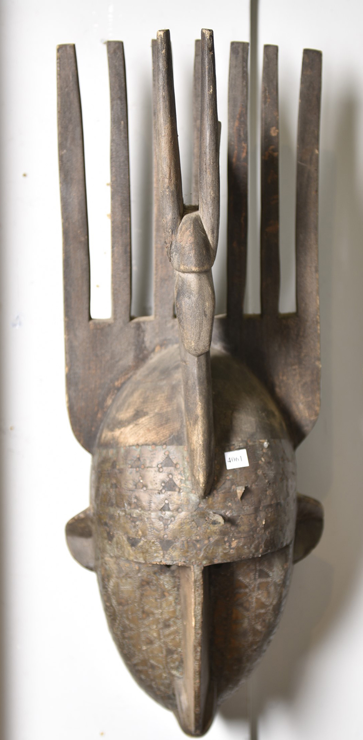 AFRICAN MASK WITH APPLIED METAL H.78CM, LEONARD JOEL LOCAL DELIVERY SIZE: MEDIUM