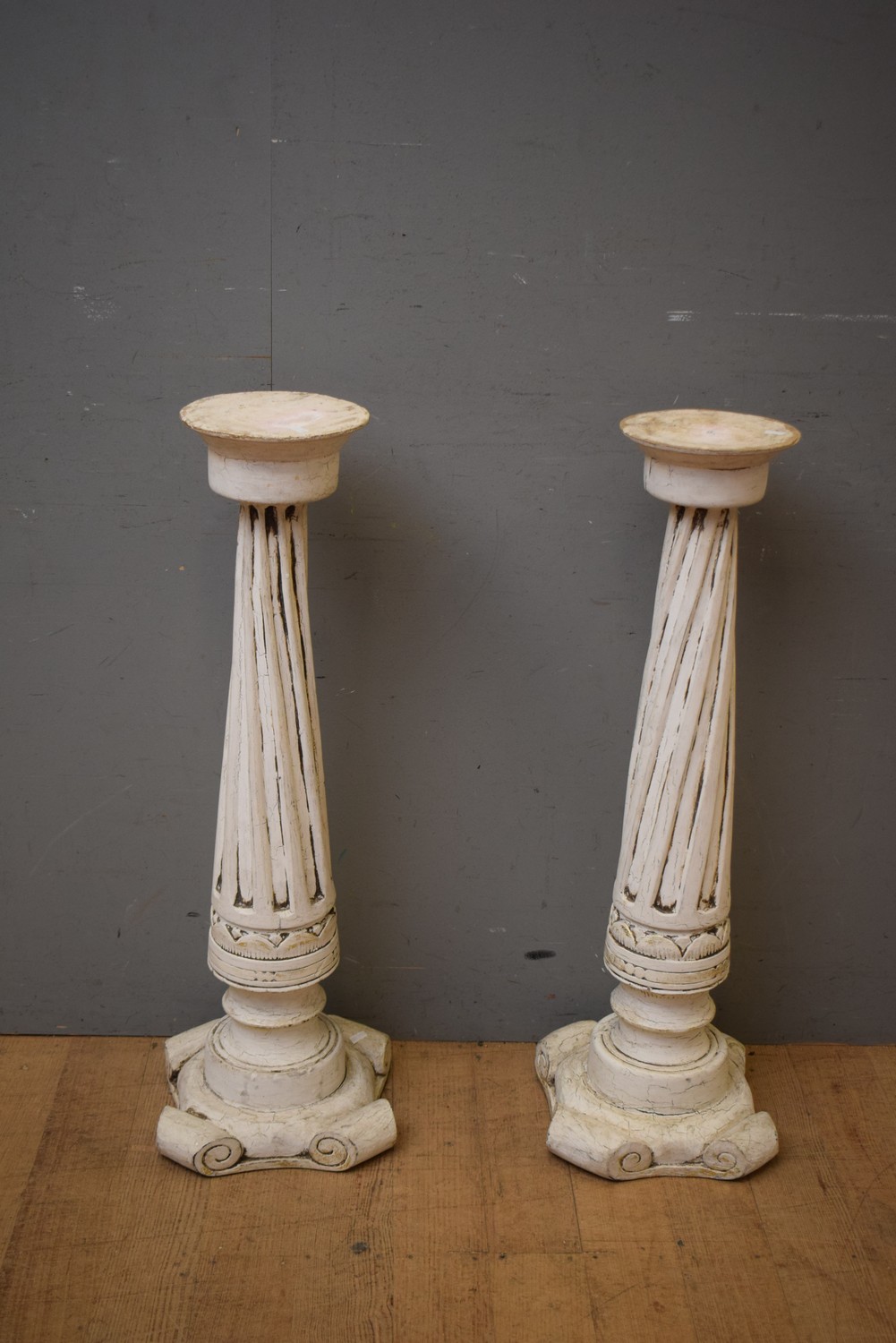 PAIR OF 1920S GESSO WHITE PAINTED CARVED WOODEN PEDESTALS (H88 X W28 CM) (LEONARD JOEL DELIVERY SIZE: MEDIUM)
