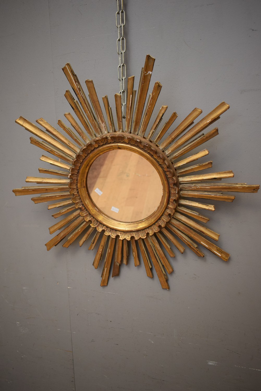 FINE RARE 19TH CENTURY FRENCH GILT WOODEN HAND CARVED STARBURST MIRROR (70 CM DIAMETER) (LEONARD JOEL DELIVERY SIZE: MEDIUM)
