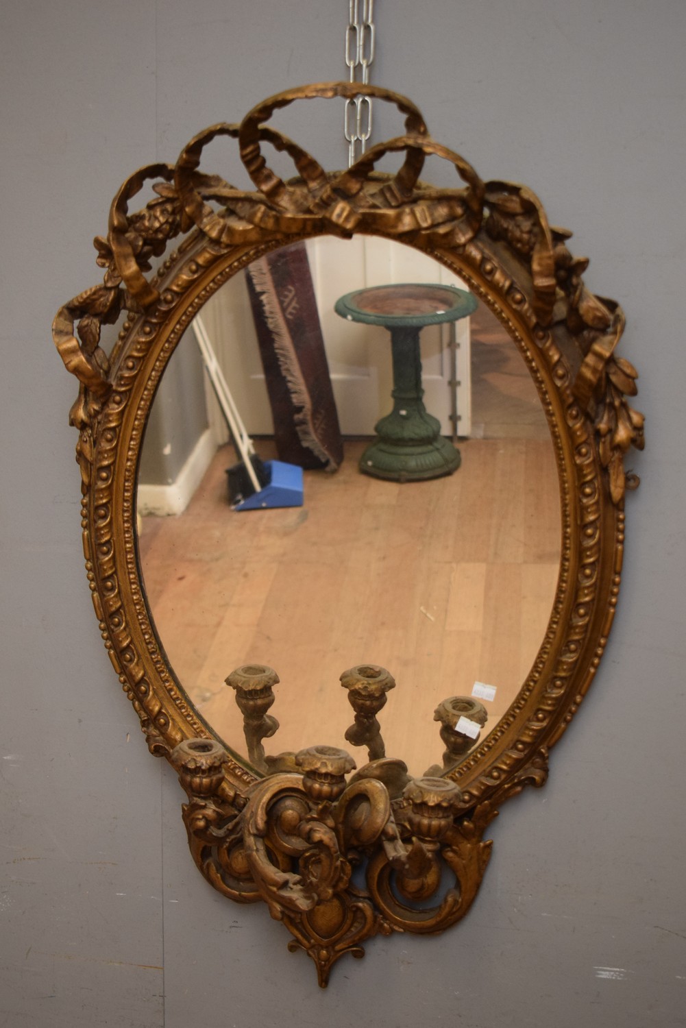 RARE 18TH CENTURY FRENCH GILTWOOD GESSO WALL SCONCE MIRROR WITH GIRANDOLE CANDLE HOLDERS (90 X 56 CM) (LEONARD JOEL DELIVERY SIZE: LARGE)
