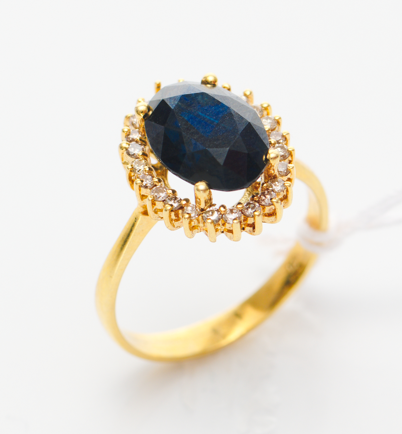 A SAPPHIRE AND DIAMOND CLUSTER RING IN 14CT GOLD, SIZE L, 3.5GMS