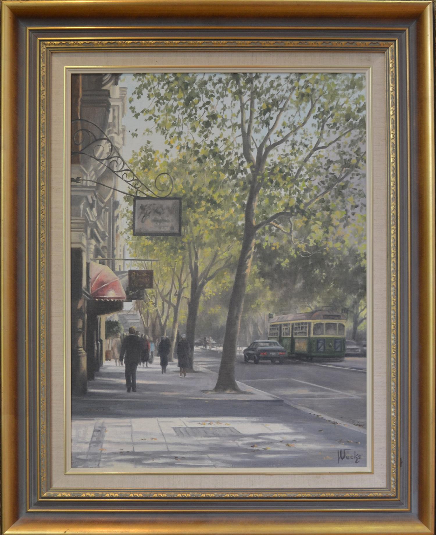 MARIE WEEKS, COLLINS STREET, OIL ON CANVASBOARD, 72 X 52CM, LEONARD JOEL DELIVERY SIZE: MEDIUM