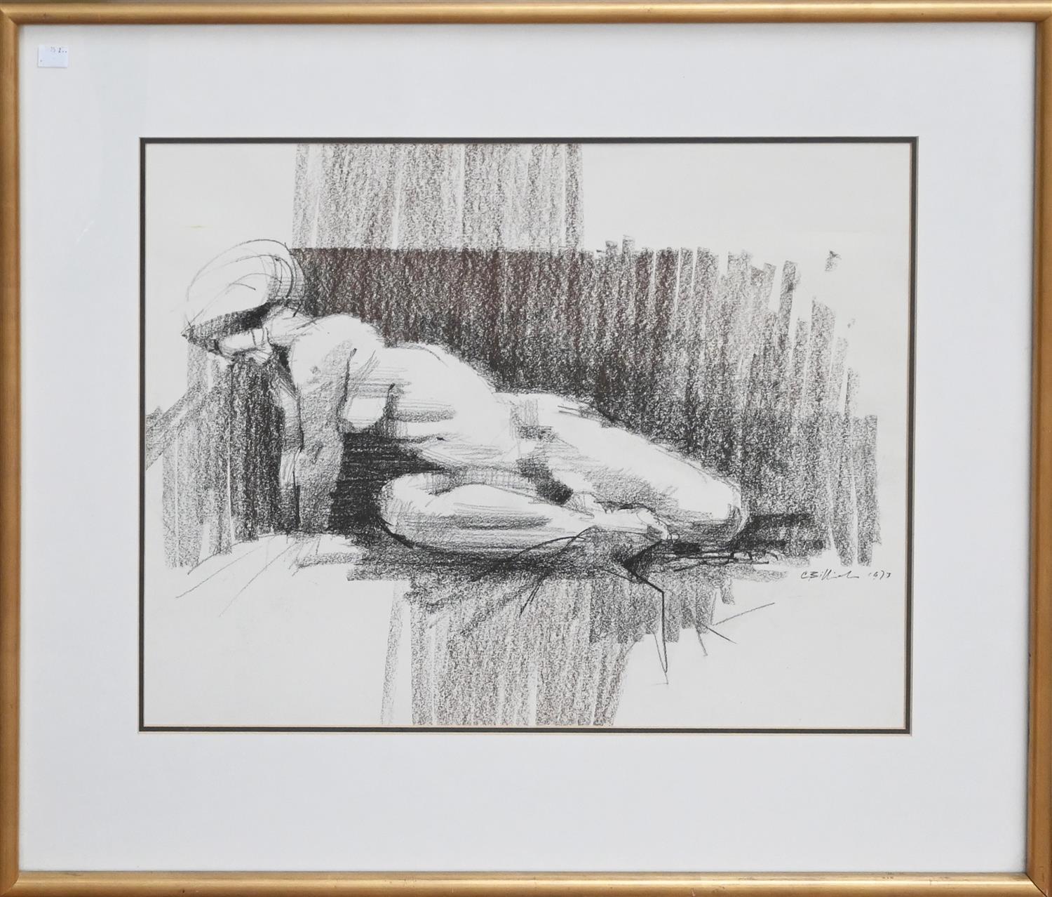 CHARLES BILLICH, NUDE 1973, CHARCOAL ON PAPER, 46 X 59CM